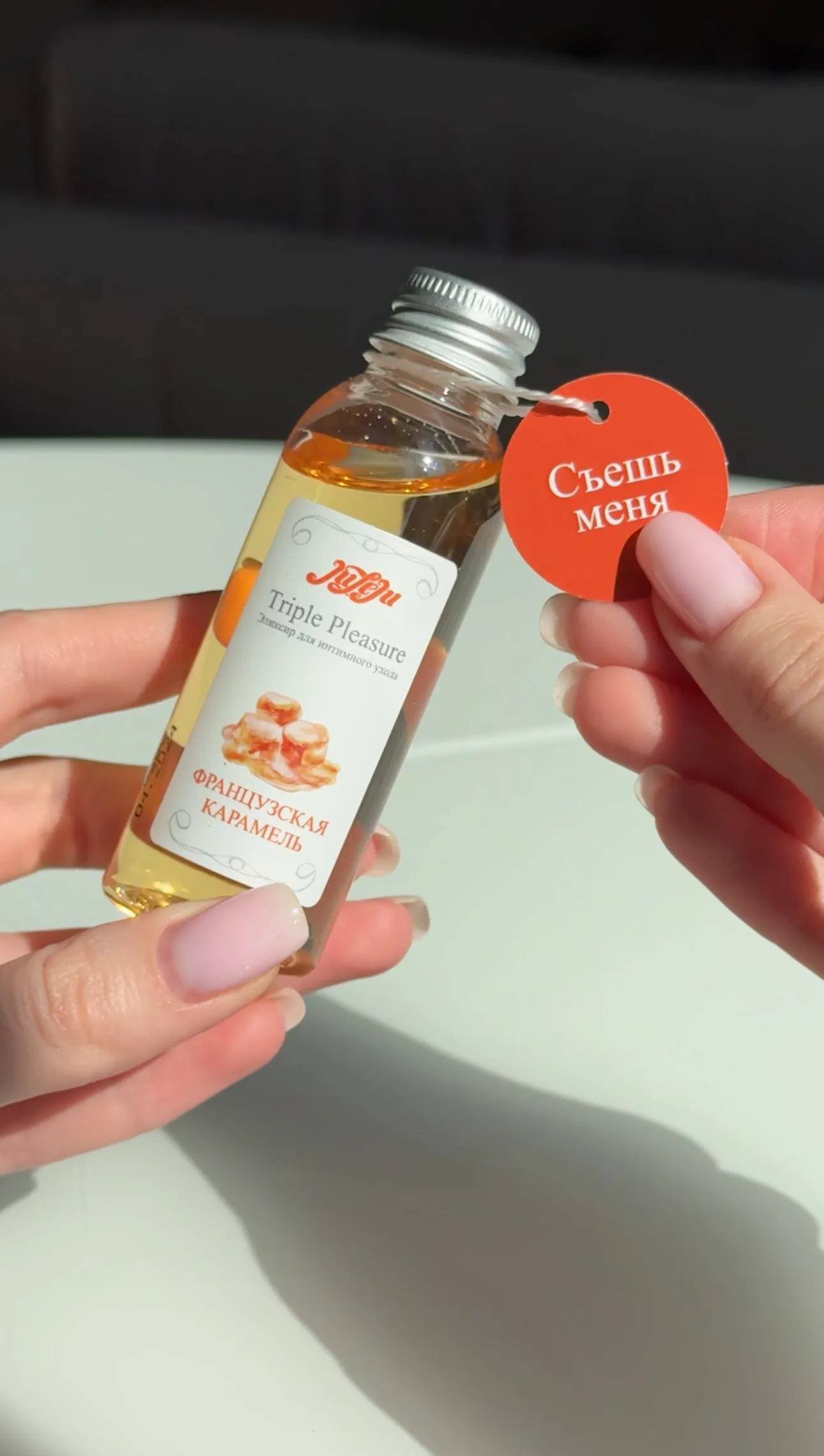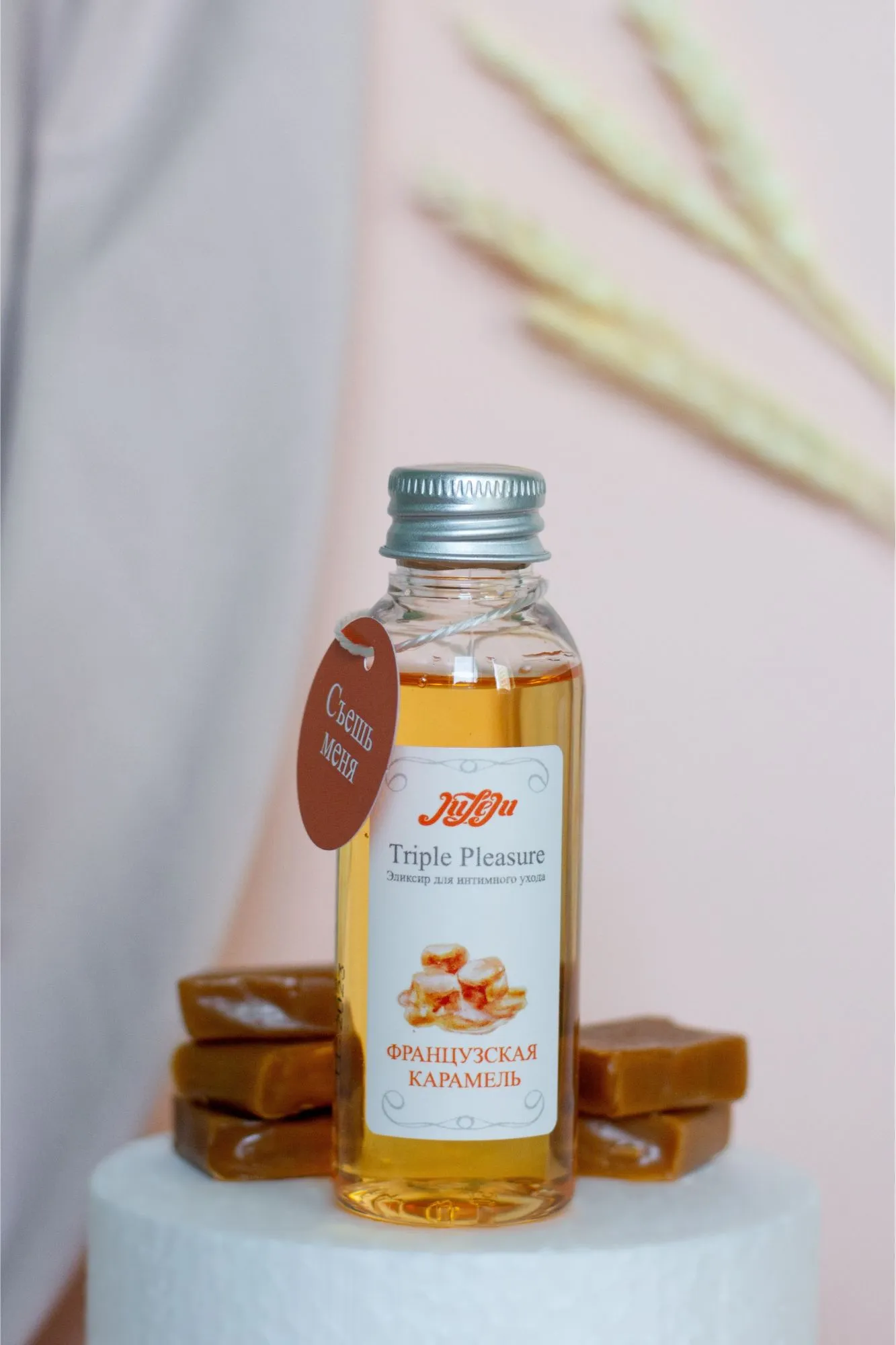 Эликсир для интимного ухода "Французская Карамель" раскроет всю чувственность прикосновений, погружая в водоворот сладкой неги. Эликсир прекрасно подходит для чувственного массажа и обеспечивает длительное скольжение в качестве интимного лубриканта. Согревающий эффект раскрывается в полной мере под воздействием дыхания и поцелуев. Подходит для всех видов интимных ласк. Не содержит парабенов и других консервантов, в состав эликсира входят только пищевые компоненты. Состав: глицерин, вода очищенная, ароматизатор пищевой “Карамель”, CI19140, CI16255..  Упаковка: картонная коробка с принтом.  срок годности-2 года.