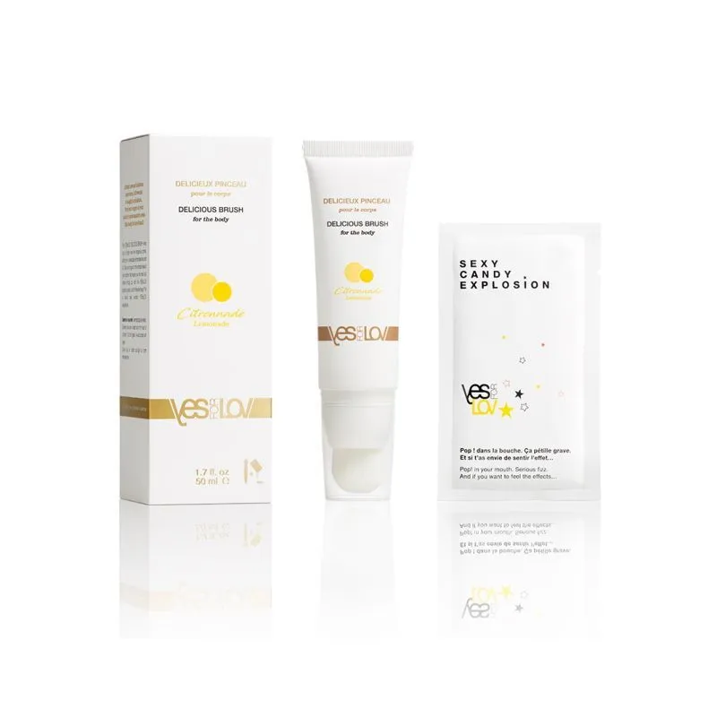 Лубрикант Delicious Brush от бренда YES-for-LOV - это съедобная смазка со вкусом лимонада с аппликатором в виде кисточки. Подобный дизайн флакона позволит Вам рисовать замысловатые узоры на теле своего партнера, слегка дразня его приятными касаниями кисточки. Смазка обладает приятным вкусом, поэтому после нанесения ее на тело, Вы сможете буквально попробовать самые интимные места своего партнера на вкус. Такая игра вдохновит Вас на исследование самых чувствительных мест на телах друг друга и позволит получить сладкое удовольствие. В комплекте с лубрикантом также идет небольшая упаковка леденцов-шипучек (7 г), которые, взрываясь на языке, удивят партнера новыми яркими ощущениями во время оральных ласк.