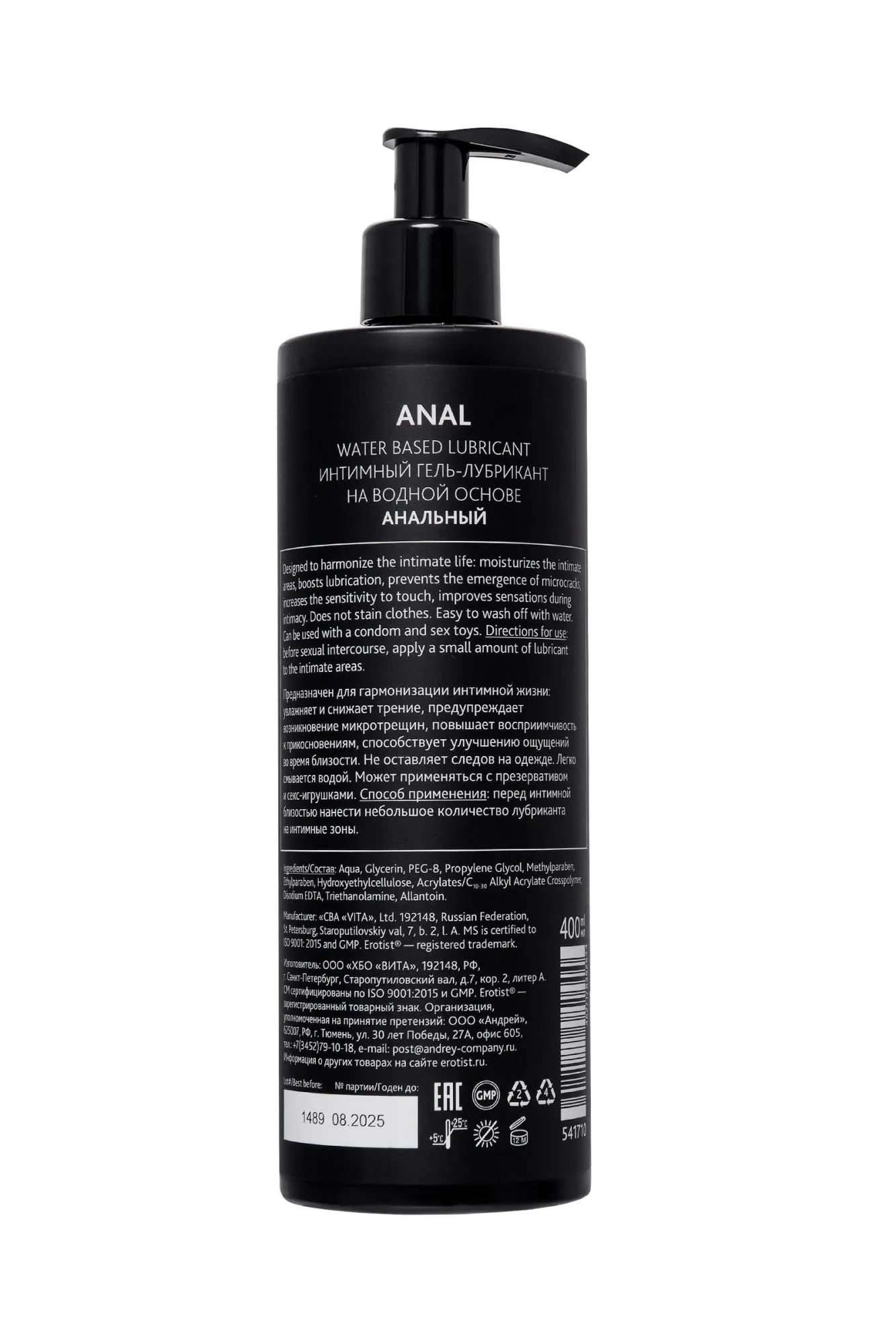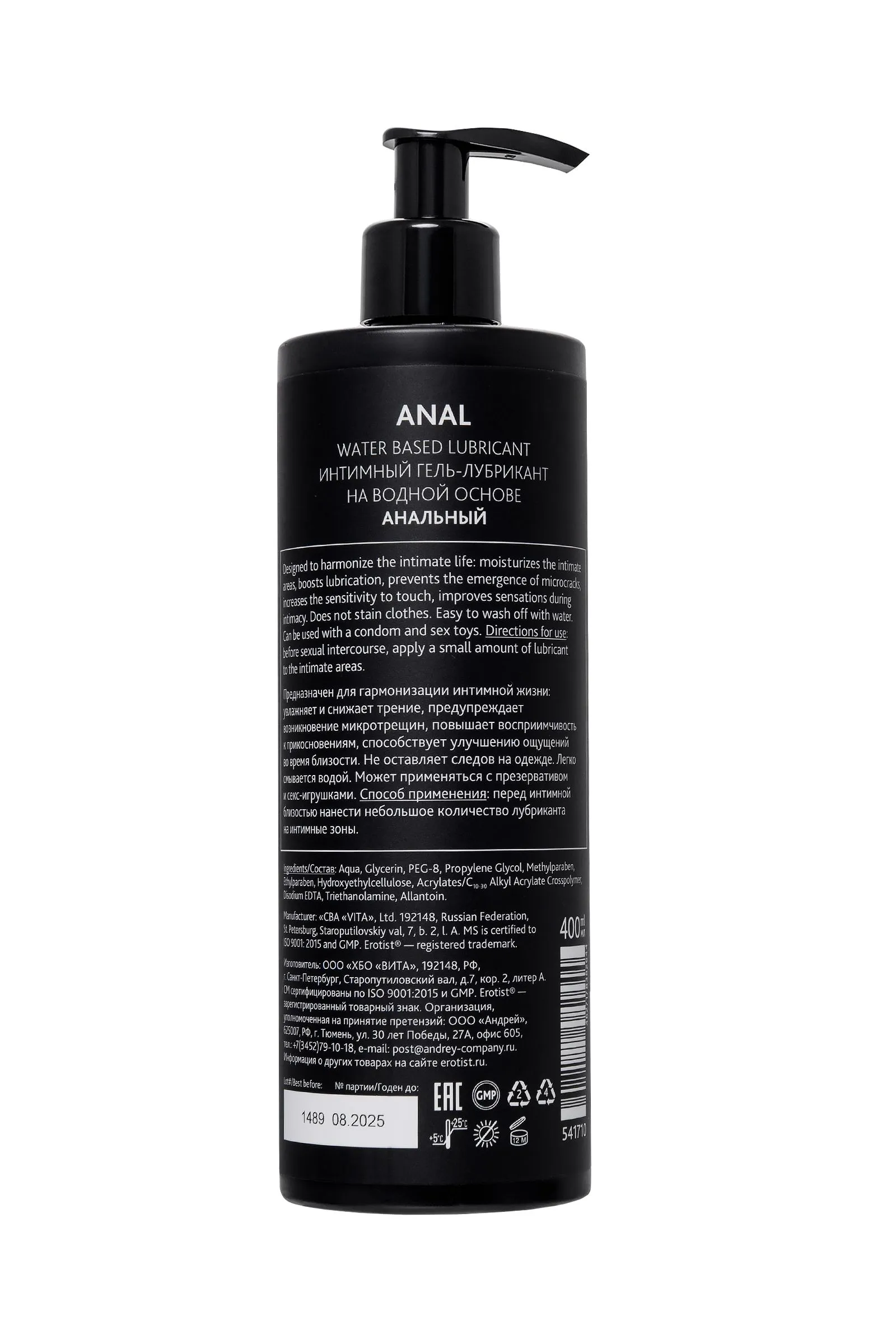 Больше никаких неприятных ощущений, болезненного проникновения и вредных последствий — от всего этого защищает анальный лубрикант на водной основе Erotist Anal. Идеально увлажняет половые органы, снижает трение, предупреждает возникновение микротрещин, а также увеличивает наслаждение от близости. Пора открыть для себя безупречный анальный секс! Лубрикант Erotist Anal имеет водную основу: он гипоаллергенен, совместим с презервативами и игрушками для взрослых, не оставляет следов и легко смывается водой.