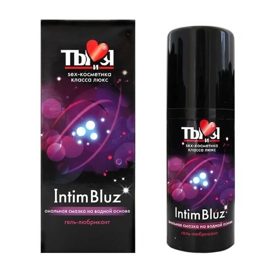 Анальная смазка на водной основе Intim Bluz объемом 50 г выпускается в форме флакона с дозатором. Разработана Лабораторией «Биоритм» для защиты слизистой ануса и безболезненного, долгого скольжения. В составе смазки есть заживляющие и противовоспалительные вещества, также она увлажняет кожу и способствует легкому проникновению. Совместима с изделиями из искусственных материалов.