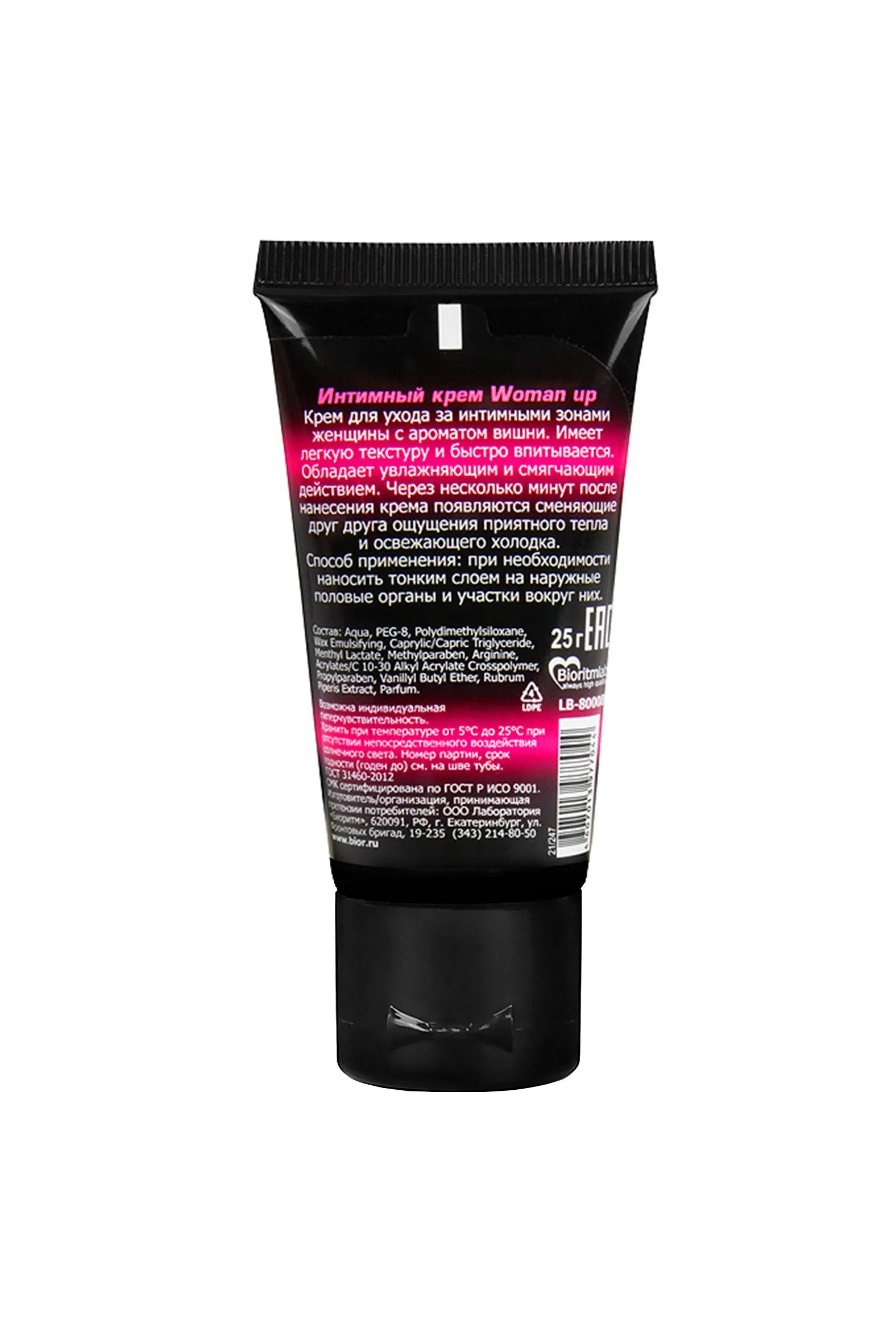 Лед и пламя… На что ты решишься, чтобы испытать новые сексуальные ощущения? Попробуй стимулирующий крем WOMAN UP с потрясающим ароматом вишни. С этим кремом ты можешь позволить себе пробудить дикую страсть и первобытные желания. Вмассируй небольшое количество крема в головку клитора во время прелюдии. Через пару минут ты ощутишь приятное тепло, разливающееся по всей чувствительной зоне, а затем морозную свежесть, как поцелуй ледяного ветра, а затем снова пекущее тепло. Этот невероятный танец между двух стихий поможет тебе достичь оргазма потрясающей силы. Сменяющие друг друга ощущения пробуждают чувственность и страсть как в соло игре, так и в занятии любовью с партнером. Увлажняющий и смягчающий крем WOMAN UP даст огня твоему телу и пробудит свою внутреннюю Богиню. Способ применения: перед интимной близостью нанести небольшое количество крема на клитор. Дозировка подбирается индивидуально, начиная с 1 капли размером с маленькую горошину. При необходимости количество стимулятора можно увеличивать. Возможна индивидуальная гиперчувствительность. Не допускать попадания в глаза, на раздраженную или поврежденную кожу. Состав:Aqua, PEG-8, Polydimethylsiloxane, Wax Emulsifying, Caprylic/Capric Triglyceride, Menthyl Lactate, Methylparaben, Arginine, Acrylates/C 10-30 Alkyl Acrylate Crosspolymer, Propylparaben, Vanillyl Butyl Ether, Rubrum Piperis Extract, Parfum. Объем: туба 25 г