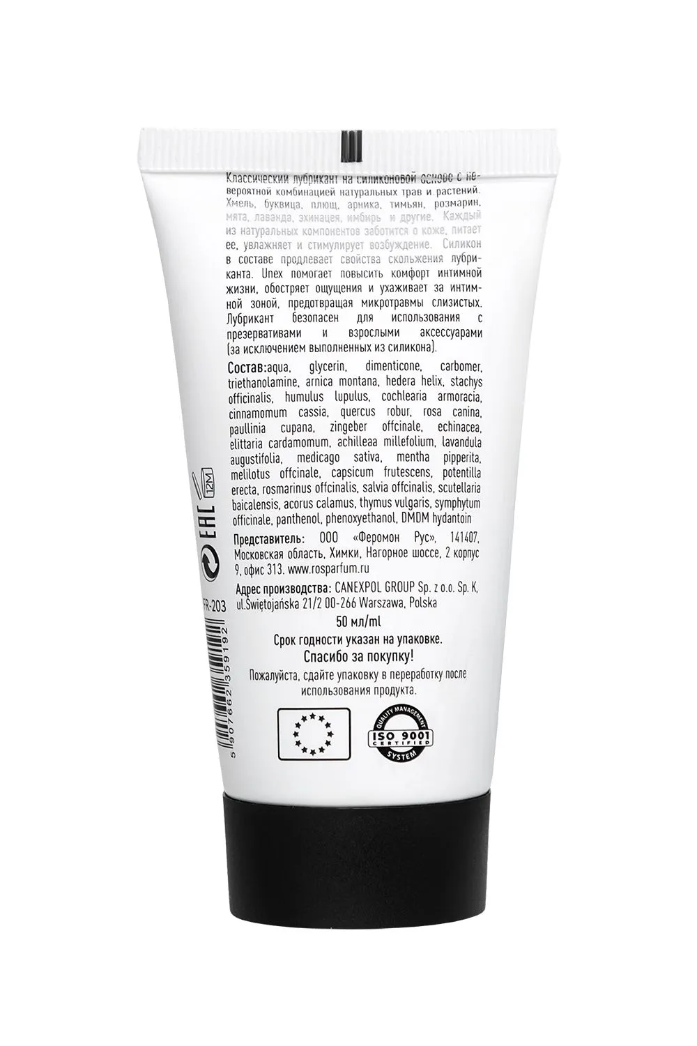Лубрикант UNEX с возбуждающим эффектом, на силиконовой основе с хмелем, 50 мл
