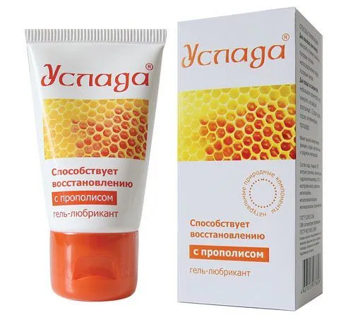 "Услада" с прополисом предназначена для имитации вагинальной смазки у женщин любого возраста. Гель обеспечивает нежное проникновение и длительное скольжение. Применяется как гигиеническое средство при сухости влагалища. Услада с прополисом оказывает увлажняющее и регенерирующие действие, защищает и ухаживает за слизистой половых органов. Также гель обладает дезодорирующим действием и препятствует появлению неприятного запаха. В