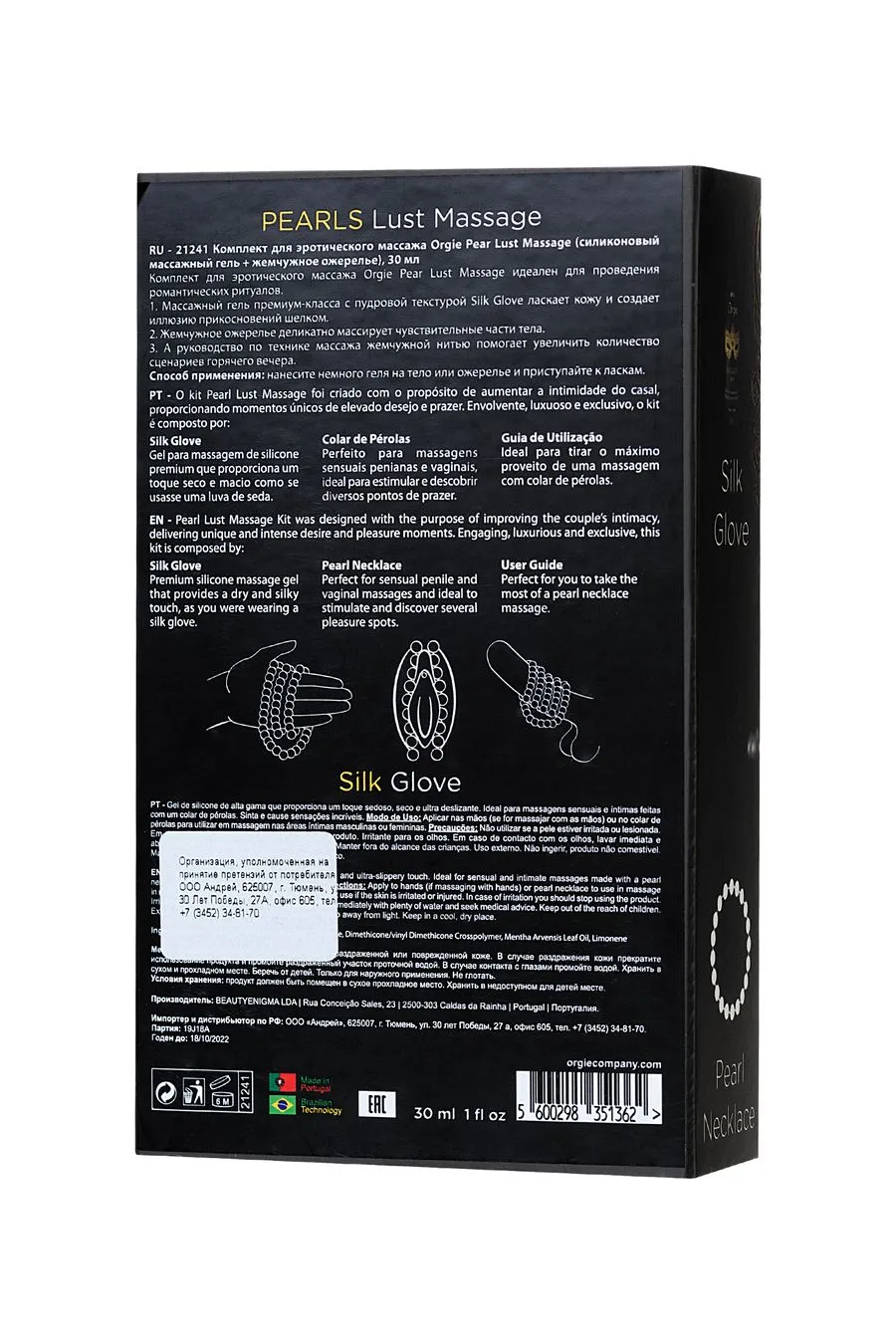 1. Массажный гель премиум-класса с пудровой текстурой Silk Glove ласкает кожу и создает иллюзию прикосновений шелком.