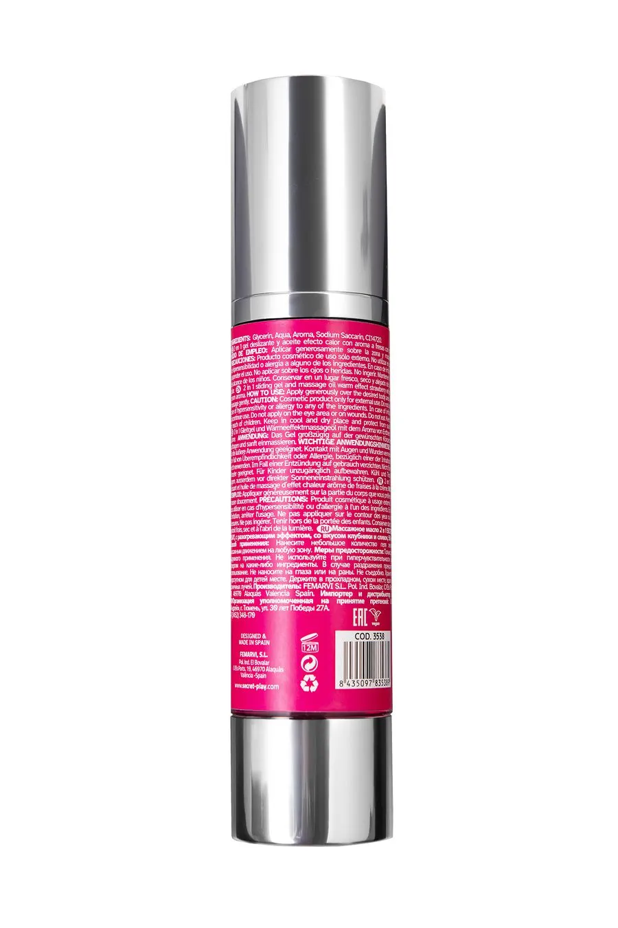 Нанесите на желаемую часть тела и мягко массируйте, чтобы ощутить приятное скольжение и разогревающий эффект. Используйте для массажа, оральных ласк или для создания романтичной и страстной атмосферы в моменты близости