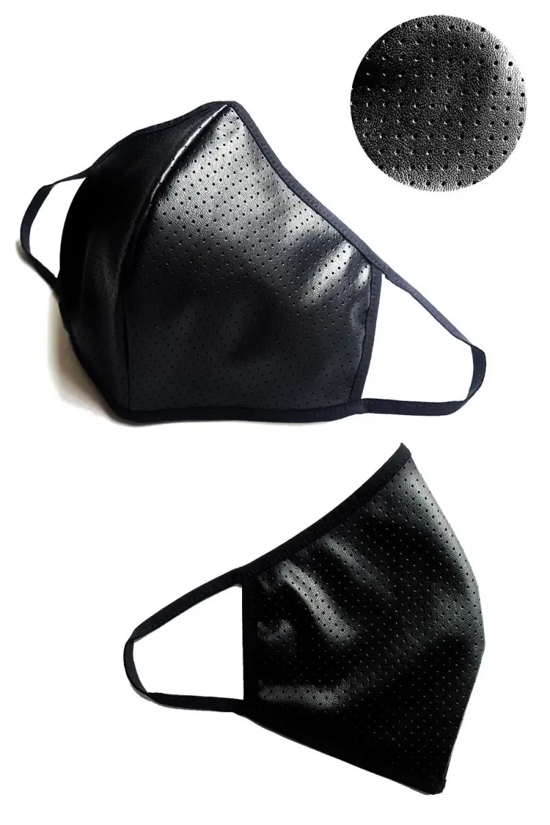 2-слойная многоразовая маска. Внешний слой – декоративная искусственная кожа с перфорацией, облегчающей воздухообмен при дыхании. Внутренний слой изготовлен из черного хлопка с сертификатом Oeko-Tex. Маска очень удобная, элегантная и прочная. Идеально подходит к лицу. Экологично - не нужно выбрасывать, можно стирать. Легкий уход - стирка при 60°С.