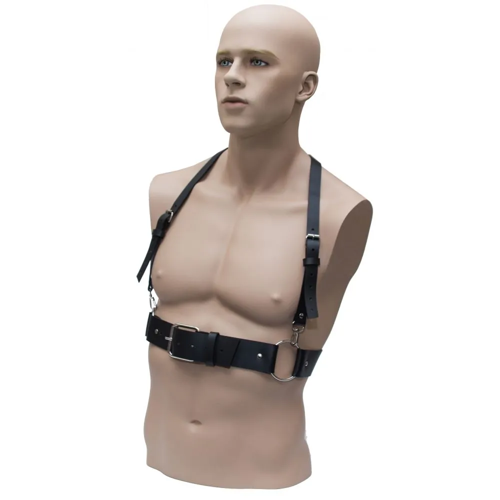 Мужская классическая портупея прекрасно дополнит любой мужской образ, которому хочется придать мужественность и воинственность. Данный аксессуар изготовлен из плотной натуральной кожи, толщиной 2.0. Вся фурнитура выполнена из нержавеющей стали с никелированным покрытием. Широкий ремень комфортно прилегает к телу и дает ощущение поддержки, а удобный фиксатор поможет отрегулировать силу обхвата. Плечевые ремни так же удобно регулируются легкодоступными застежками.
