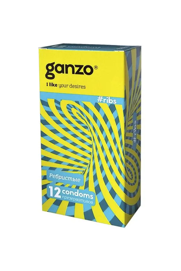 —Презервативы Ganzo, ribs, латекс, ребристые, 18 см, 5,2 см, 12 шт.