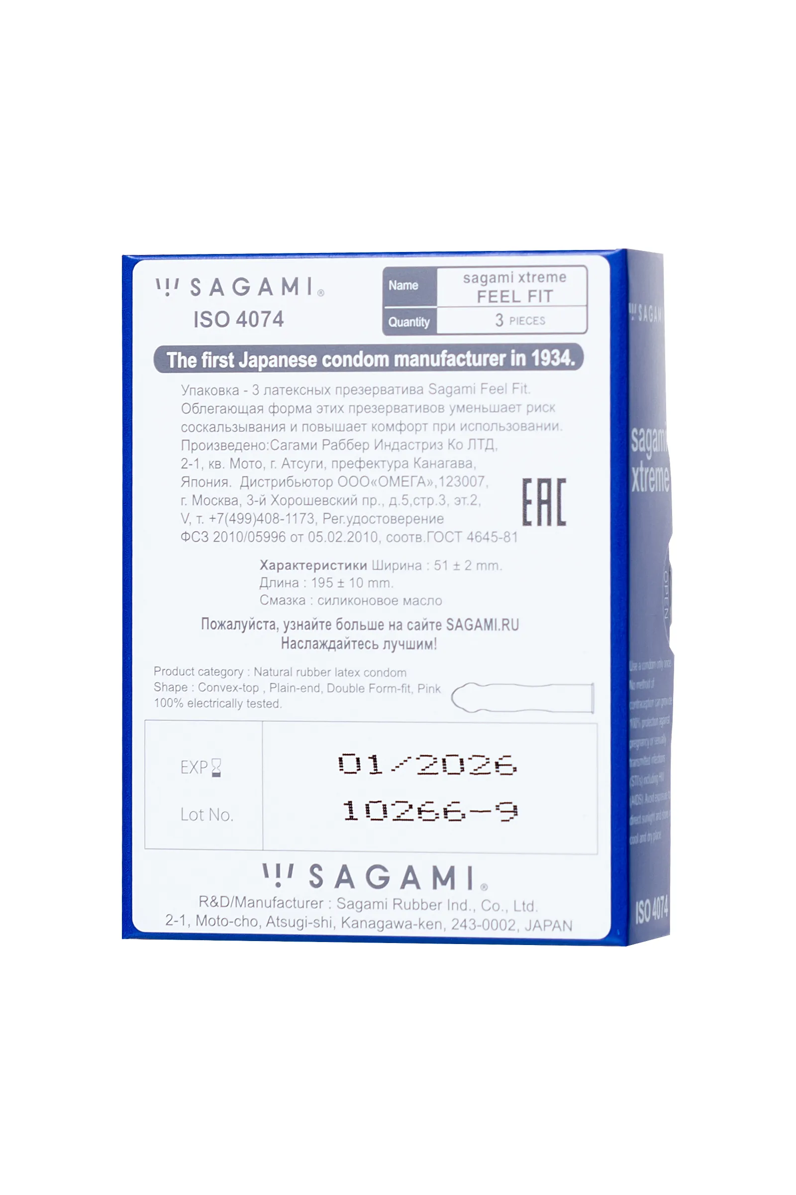 —Презервативы Sagami, extreme, feel fit, гладкие, 19 см, 5,1 см, 3 шт.
