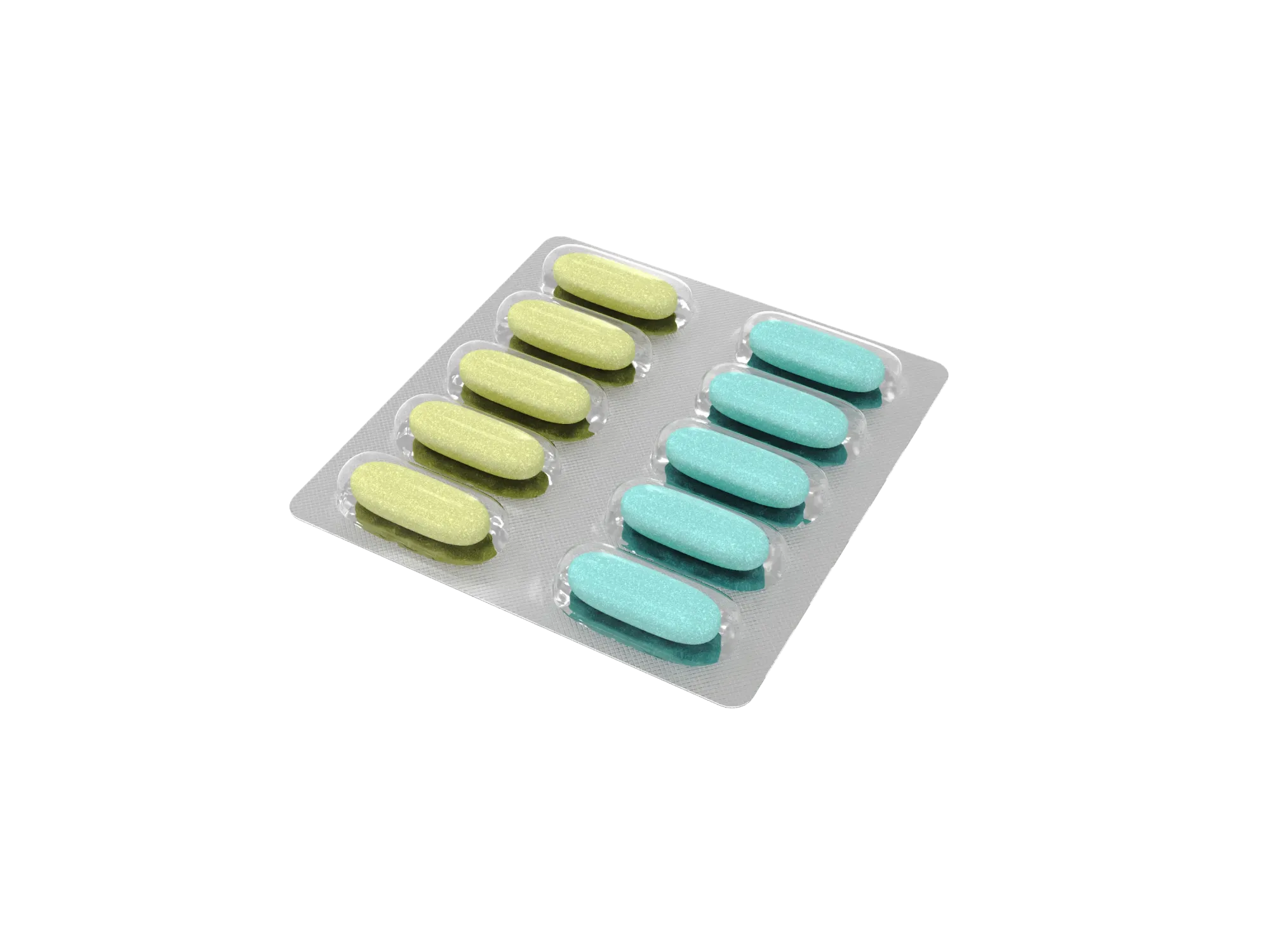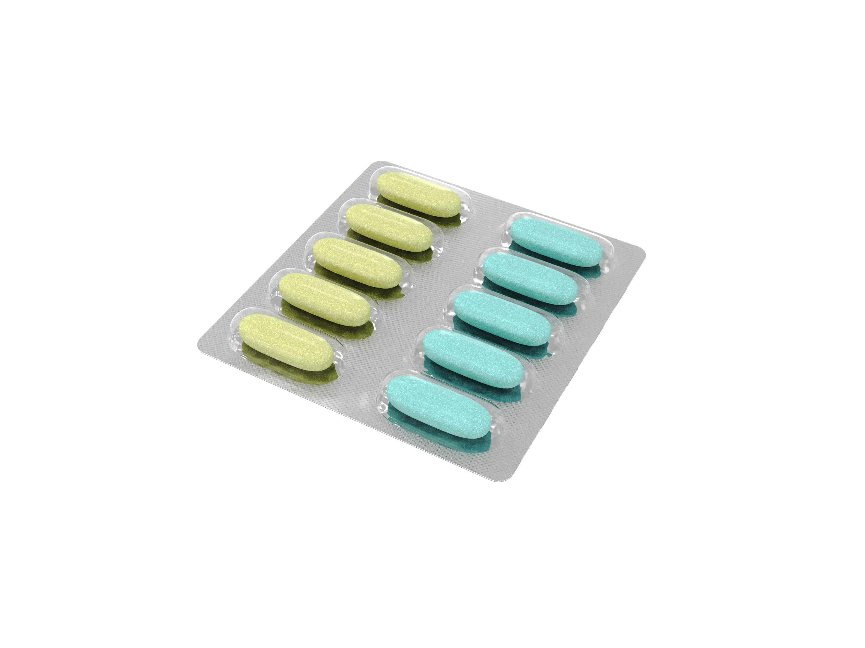 Голубые таблетки массой 1750 мг, жёлтые таблетки массой 1750 мг, по 10 таблеток (5 голубых и 5 жёлтых) в блистере. По 6 блистеров в пачке картонной. Масса нетто: 105 г.
