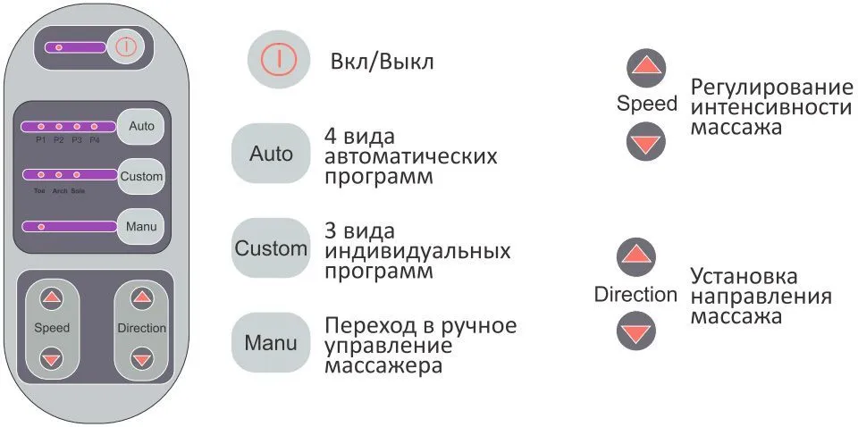 • 4 автоматические программы массажа, а также возможность самостоятельной настройки устройства.