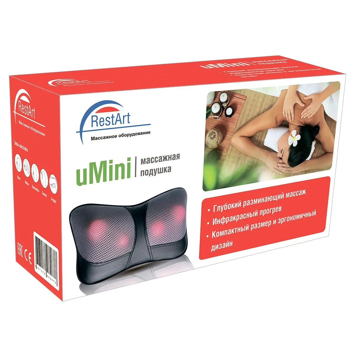 Компактная и функциональная массажная подушка uMini тщательно проработает шейно-плечевой отдел, область спины и поясницы, а также бедра и голени. Массажер удобно использовать дома и в офисе, а благодаря компактному размеру, ее очень удобно брать с собой в поездки. Работает от сети или прикуривателя.