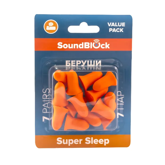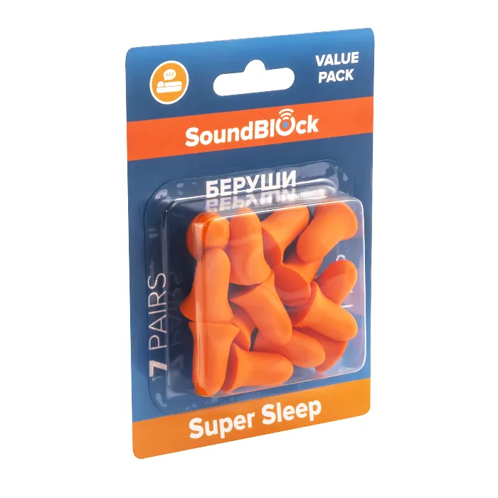 Беруши Soundblock Super Sleep – большая экономичная упаковка, хватит надолго. Предназначены для защиты органов слуха от различных шумов. Можно использовать для сна, путешествий, громких событий, плавания, для уменьшения дискомфорта во время авиапрелётов. Беруши имеют удобную конусообразную конструкцию, поэтому они вставляются в ушной канал и имеют высокий уровень шумоподавления.