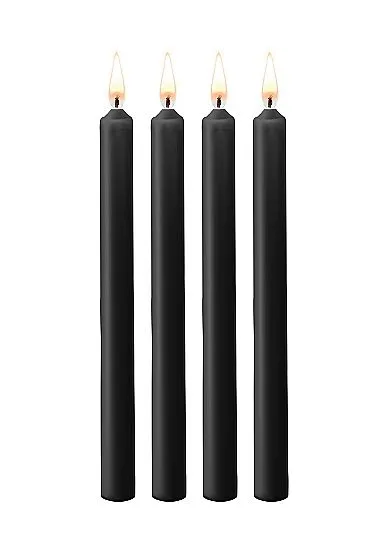 Teasing Wax Candles Large – набор из 4-х восковых свечей черного цвета. Усильте ощущения, увеличьте адреналин, и насладитесь беспрецедентным возбуждением, когда капающий горячий воск будет касаться кожи, не вызывая ожогов. Восковые BDSM-свечи в сочетании с повязкой на глазах или другим приспособлением для бондажа гарантируют увлекательное приключение всем участникам.
