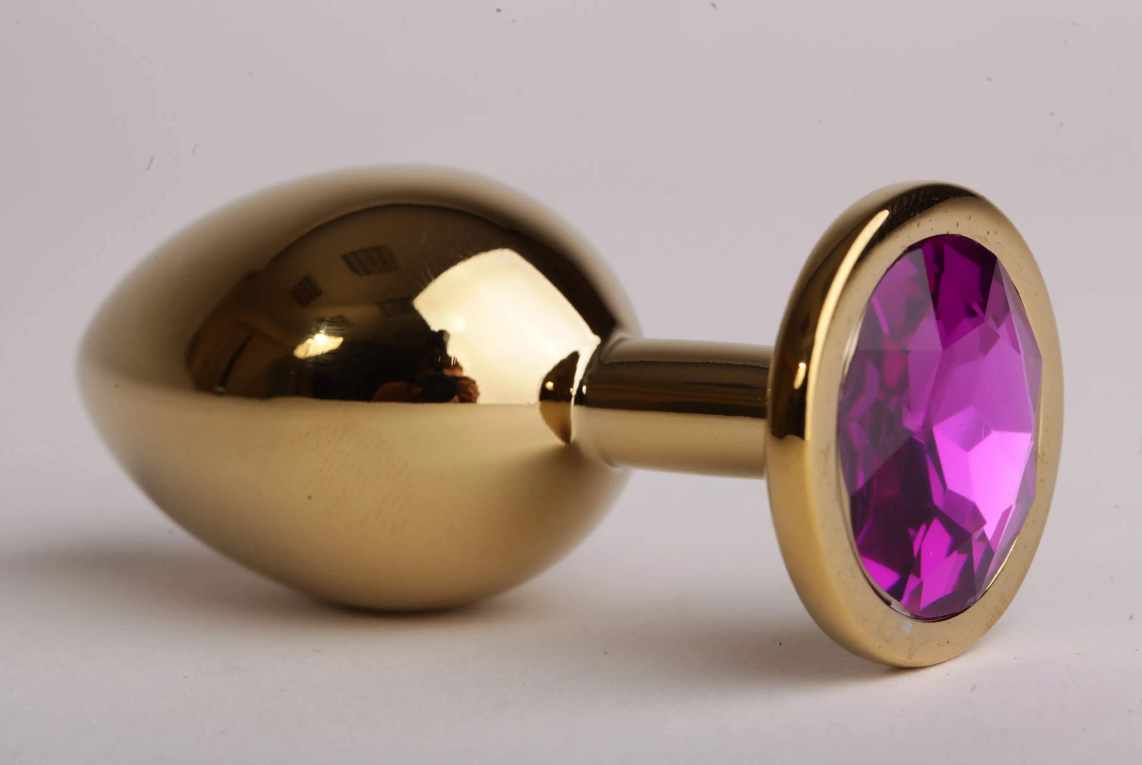 —Анальная пробка золотая с фиолетовым кристаллом 9,5х4см 47058-2-MM