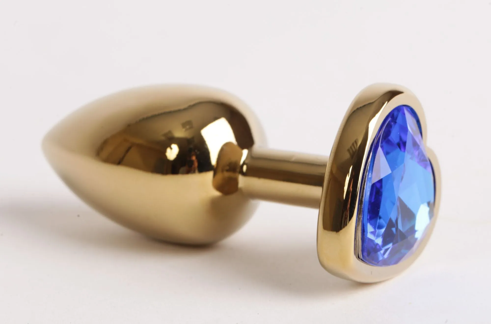 —Анальная пробка золото 8х3,5см с сердечком синий страз 47190-1-MM