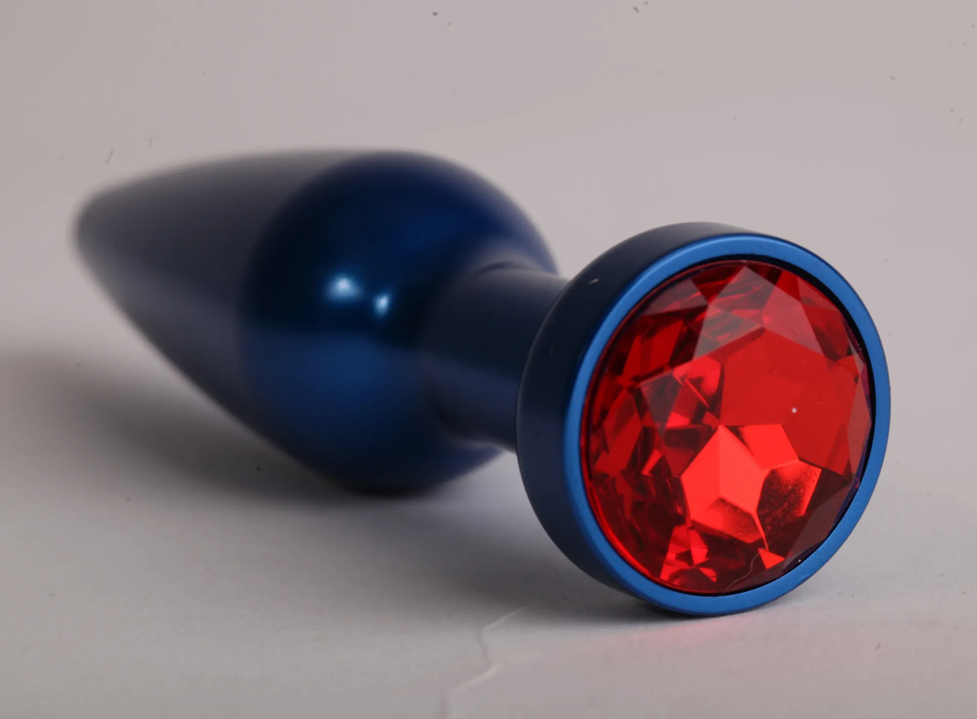 Анальная пробка металл 11,2х2,9см синяя с красным 47197-1-MM