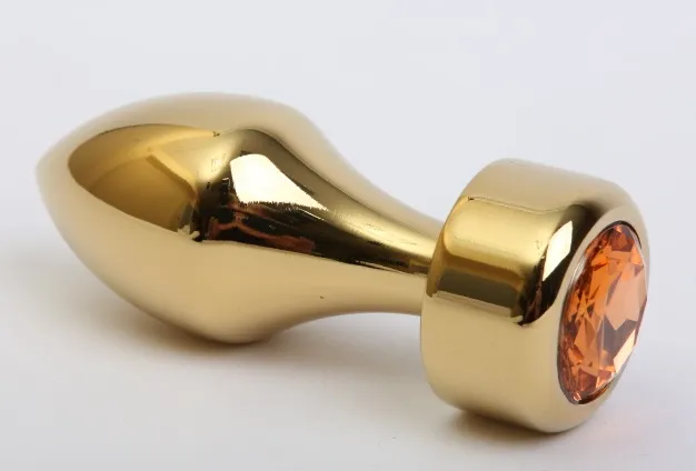 Анальная пробка под золото с ярким кристаллом внесет разнообразие в вашу интимную жизнь. Обладает сглаженной  формой, что позволяет обеспечить легкое введение и комфортное длительное ношение.  Снабжена ограничительным основанием для безопасного использования.  Характеристики:  Общая длина 7,8 см, высота основания 1,8 см, рабочая длина 6 см,наибольший диаметр: 2,9 см., вес 80 гр. Упаковка: индивидуальный тканевый мешочек и коробка.