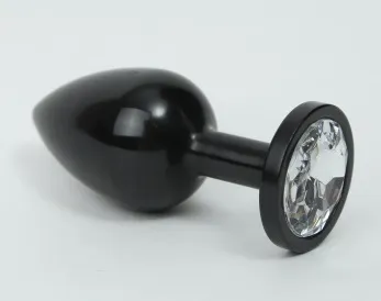 Анальная пробка металл черная с прозрачным стразом 7,6х2,8см 47412-4MM