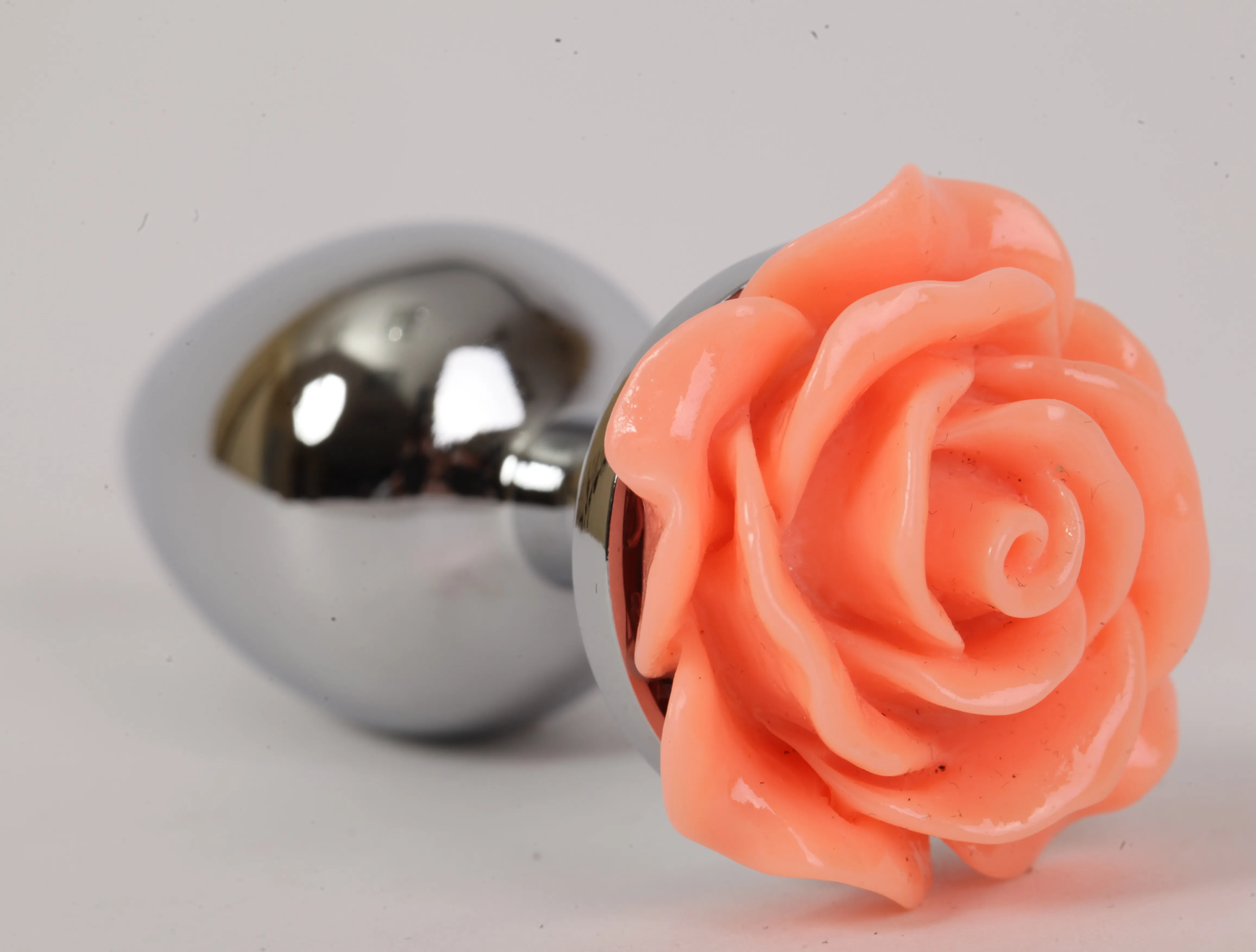 —Анальная пробка металлическая с розой цвет-лосось 2,8х7,6 47182-MM