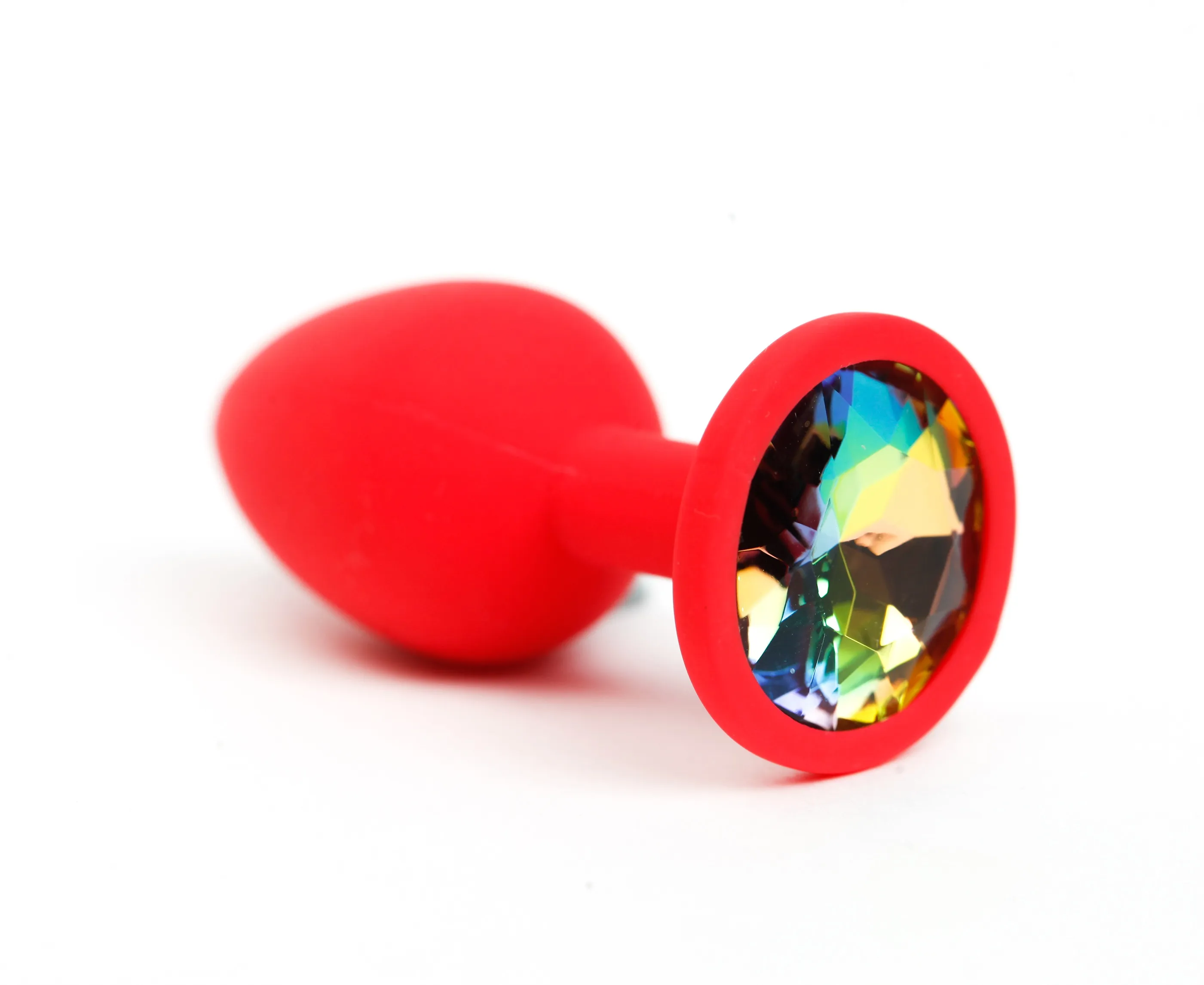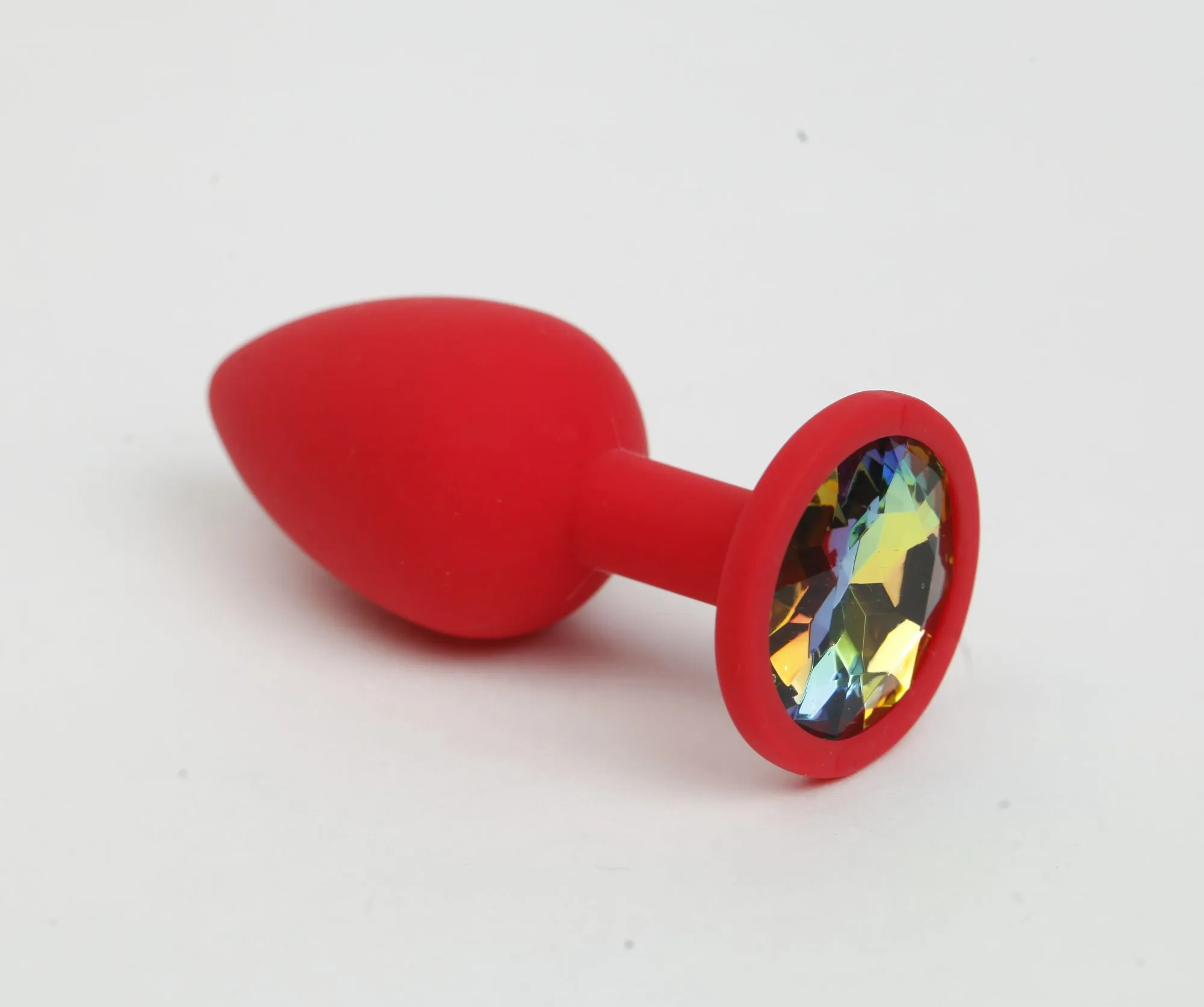 Анальная пробка силиконова красная с радужным стразом 7,6х2,8 см 47516-MM