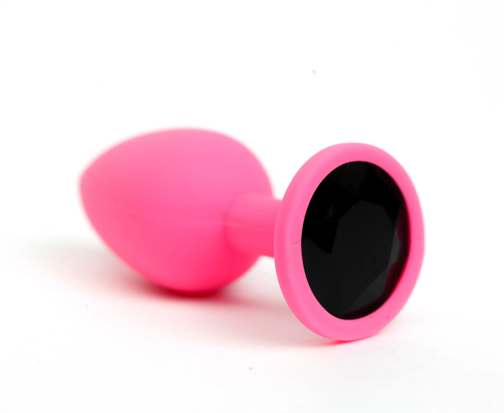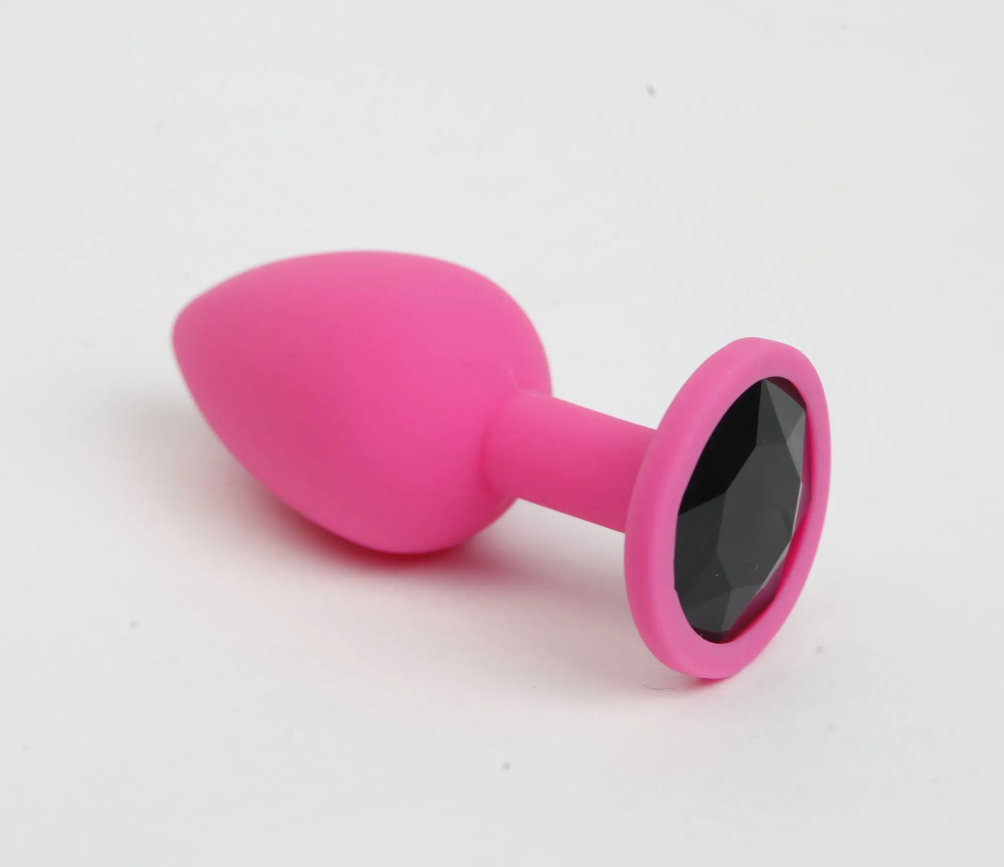 Анальная пробка силиконовая розовая с черным стразом 7,6х2,8 см 47511-MM