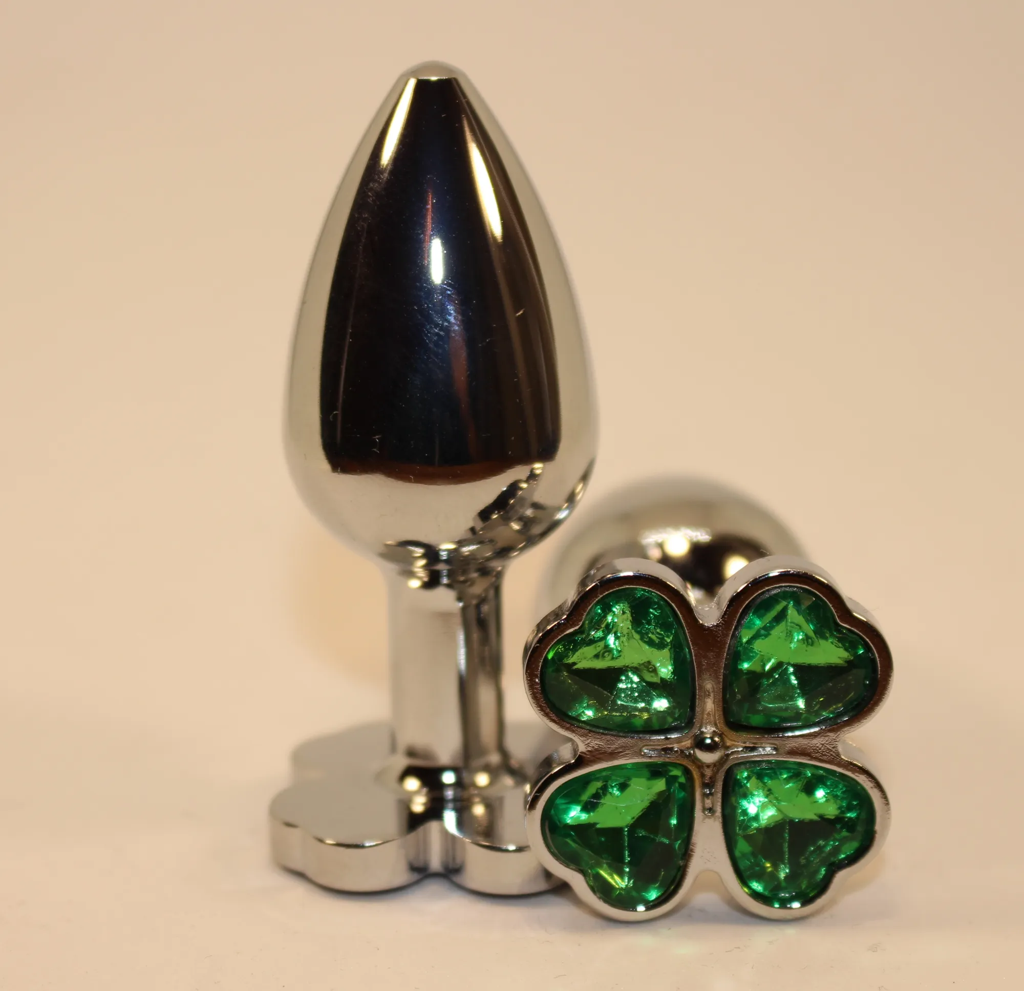 Пробка анальная металл 7,5х2,8см с сердечком зеленый страз 47439-6MM