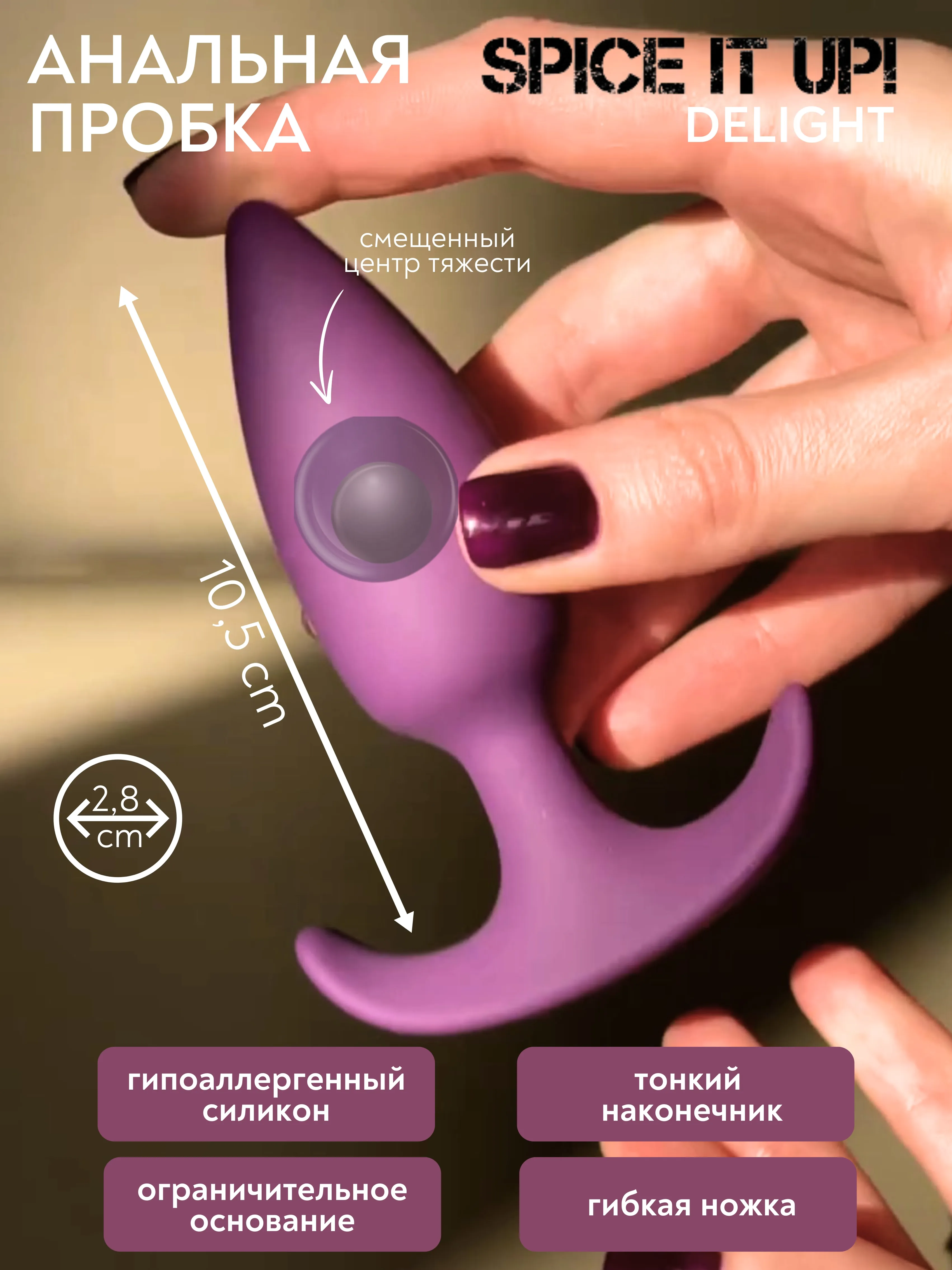 Анальный стимулятор со смещенным центром тяжести имеет внутри шарик в пластиковом футляре, который обеспечивает акустическую вибрацию при ударе шарика о стенку пробки во время использования. Стимулятор изготовлен из гипоаллергенного силикона, он не только прослужит долго, но и обеспечит высокий уровень гигиены. Подходит для длительного ношения благодаря эргономичной форме и надежному ограничительному основанию. Массажер подходит как для мужчин, так и для женщин, его можно кипятить для идеальной стерилизации.