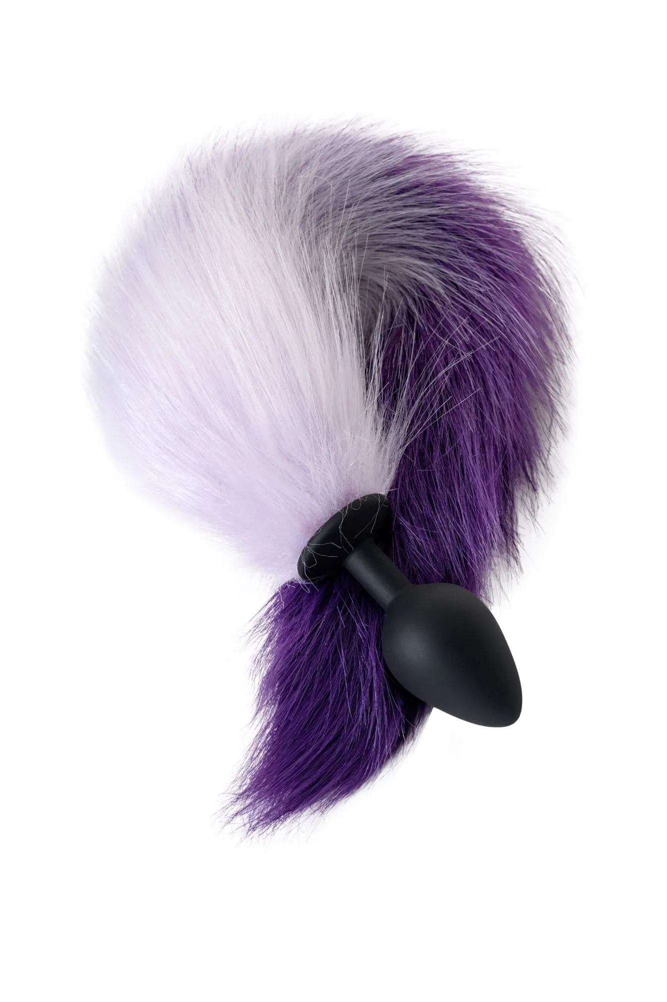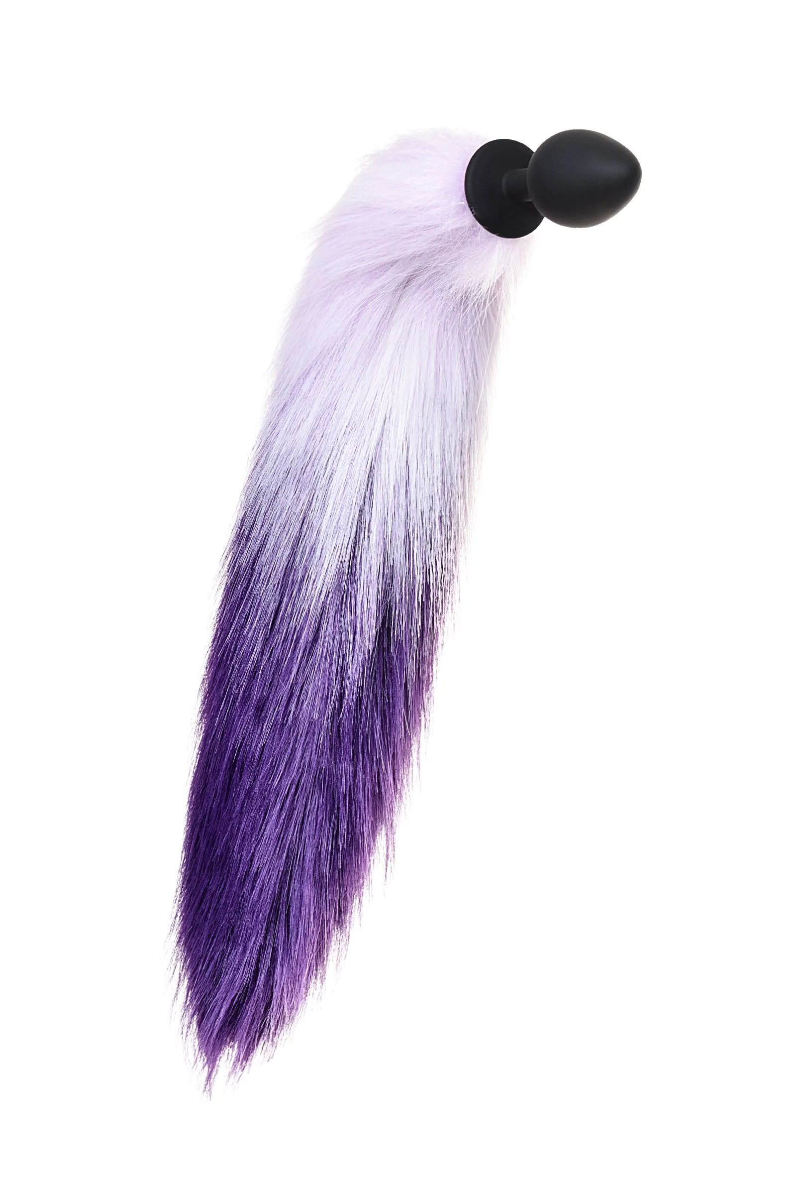 —Анальная втулка с бело-фиолетовым хвостом POPO Pleasure by TOYFA, M, силикон, черная, 45 см, Ø 3,3 с