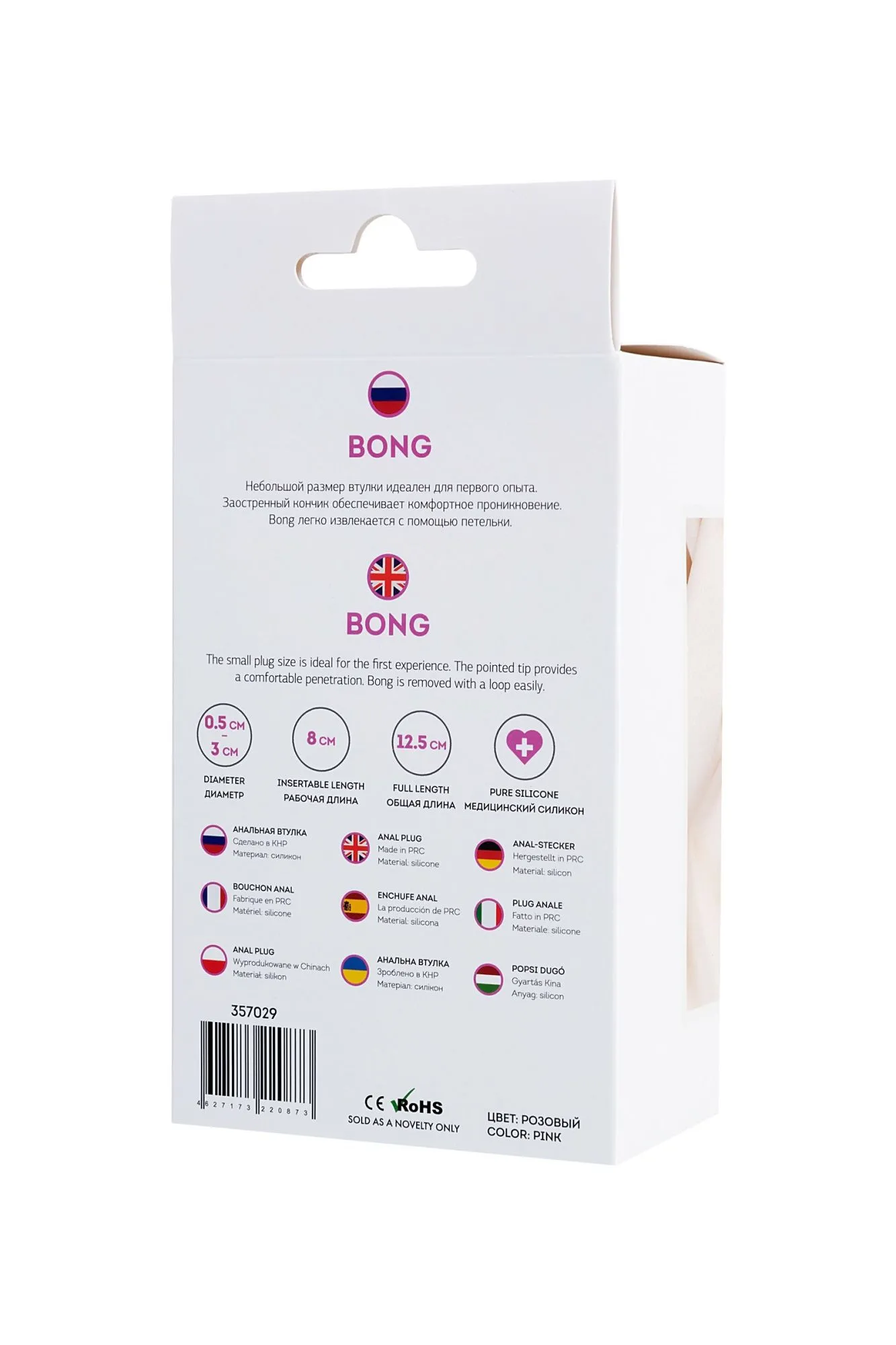 Bong Небольшой размер втулки идеален для первого опыта. Заостренный кончик обеспечивает комфортное проникновение. Bong легко извлекается с помощью петельки.