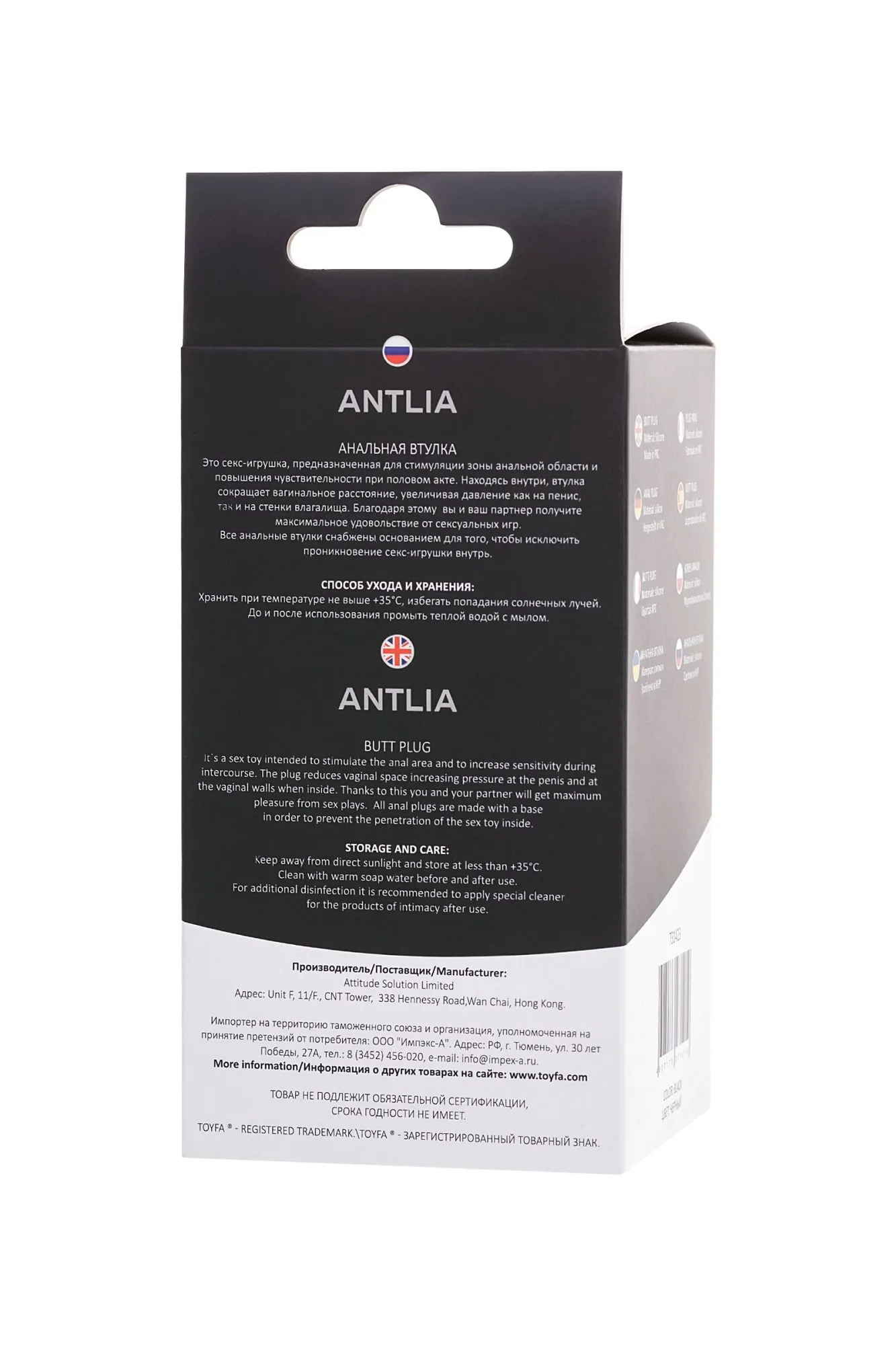 Анальная втулка TOYFA POPO Pleasure Antlia, силиконовая, черная,10,5 см