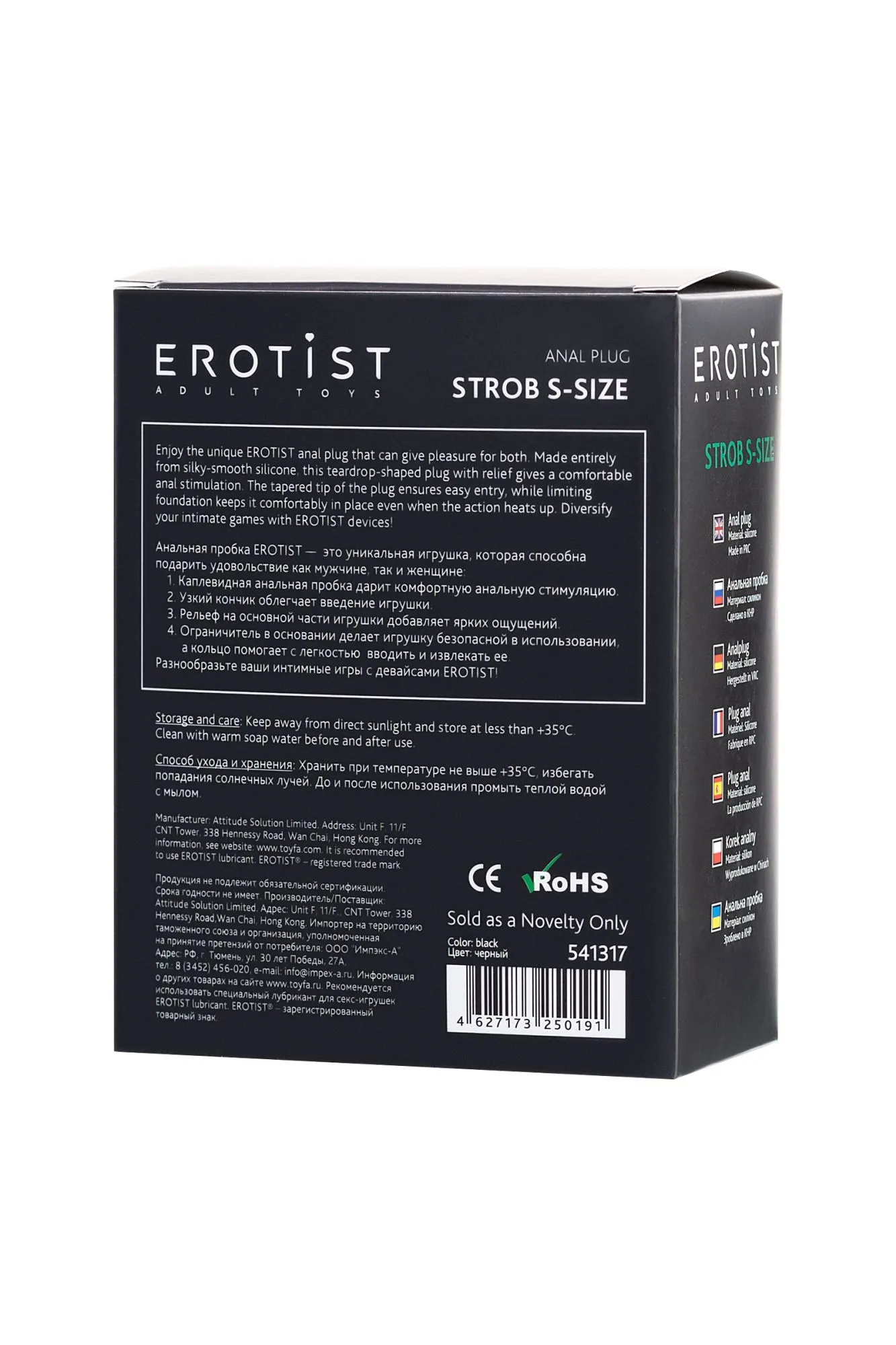 —Анальная пробка Erotist Strob S - size, силикон, черная, 11,7 см