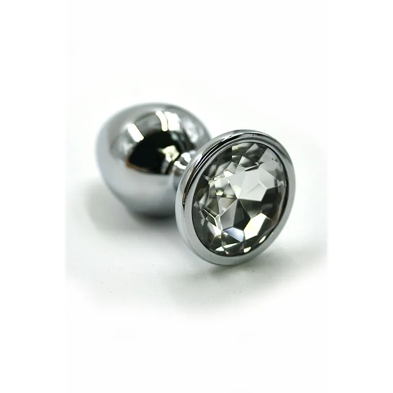 —Серебристая анальная пробка с прозрачным кристаллом (Small)