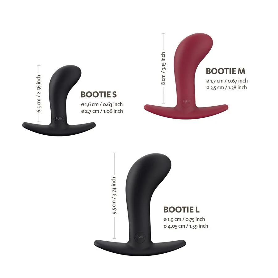 Анальные стимуляторы разных размеров  Bootie по достоинству оценят как опытные любители анальных ласк, так и новички. Они подходят для мужчин и женщин. Пробки сделаны из нежного медицинского силикона, они достаточно гибкие, но при этом не слишком мягкие. Округлая форма каждой пробки позволит аккуратно ввести их внутрь, после чего загнутый кончик будет нежно массажировать анус. Игрушки можно использовать во время или перед интимной близостью для дополнительных ощущений, а также для подготовки к анальному сексу. Широкое основание стимуляторов предотвратит их полное втягивание и гарантирует безопасную игру.