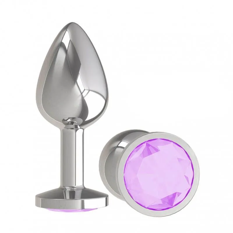 Анальная пробка Dжага Dжага Silver с сиреневым кристаллом