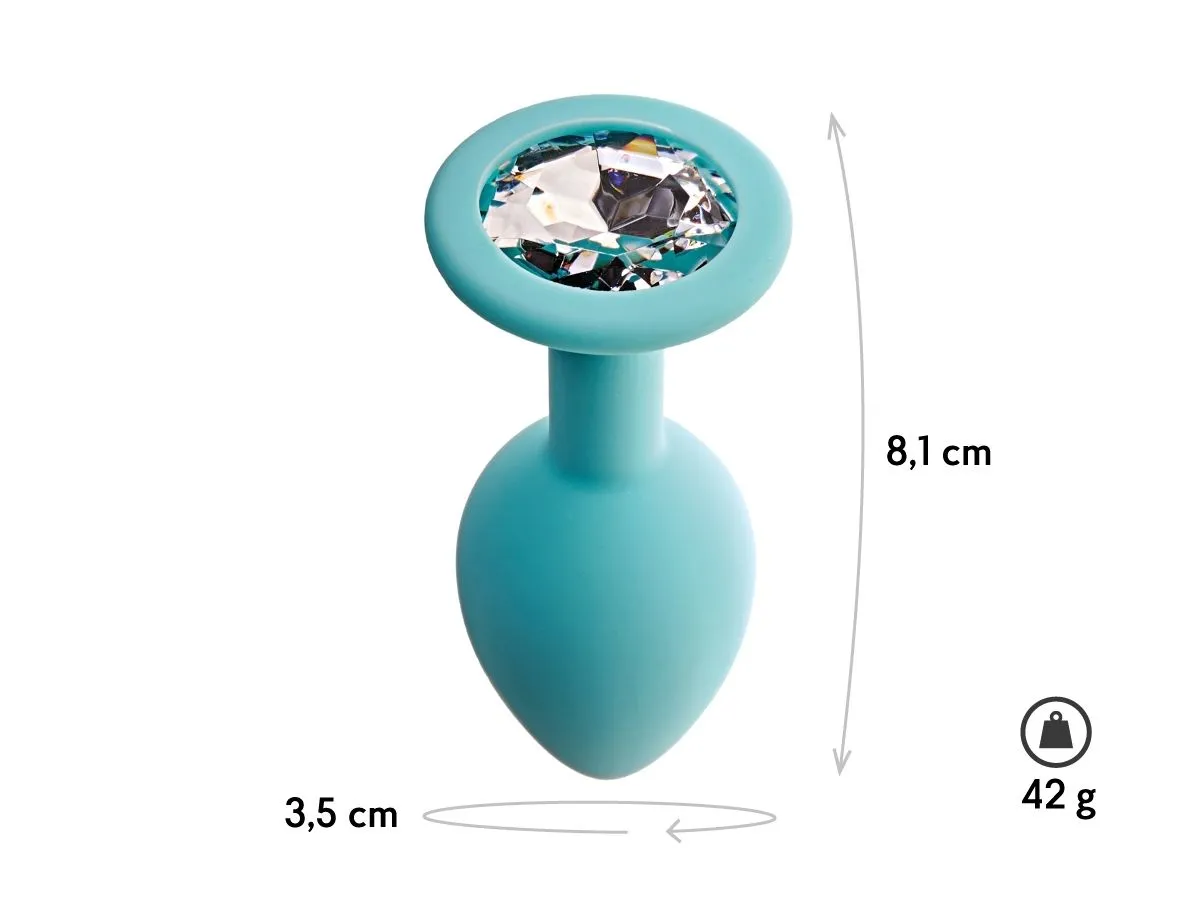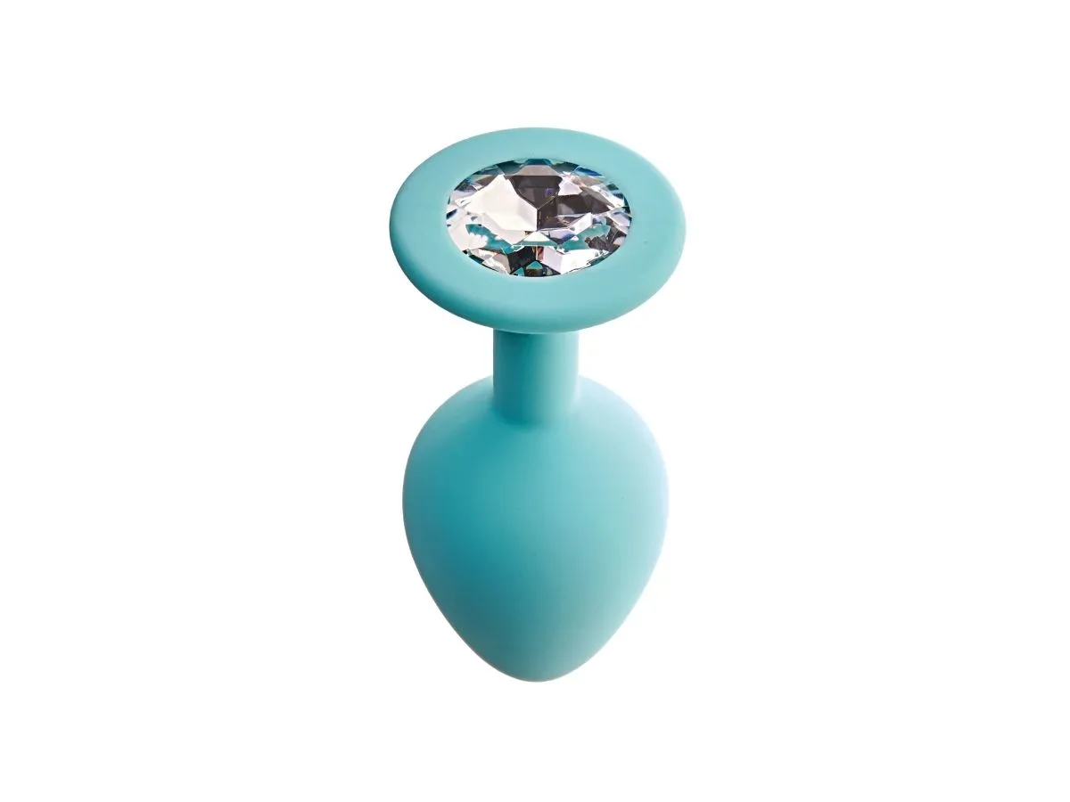 Анальная пробка с кристаллом Gamma М, аквамарин + белый кристалл
