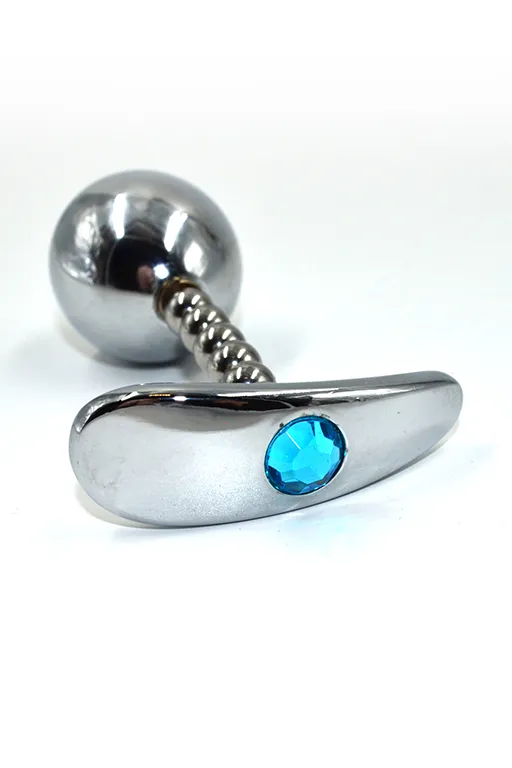 Анальная пробка с маленьким нежно-голубым кристаллом (стразом) – это декоративное украшение, имеющее проникающую анальную часть и анатомически изогнутое основание, что позволяет носить пробку внутри тела и использовать во время полового акта. Идеально подходит для украшения тела, сужения влагалища, стимуляции ануса и подготовки к анальному сексу.
