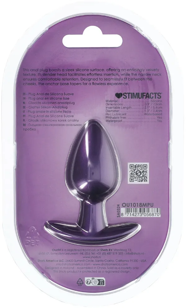Анальная пробка Ouch! Medium диаметром 3,4 см. в красивом металлическом цвете — это нечто особенное. Независимо от того, занимаетесь ли вы в одиночку или с партнёром, откройте для себя новые удовольствия с этой прекрасной мягкой силиконовой пробкой Ouch!. Анальная пробка, благодаря анатомической форме ограничителя, идеально подходит для ношения.