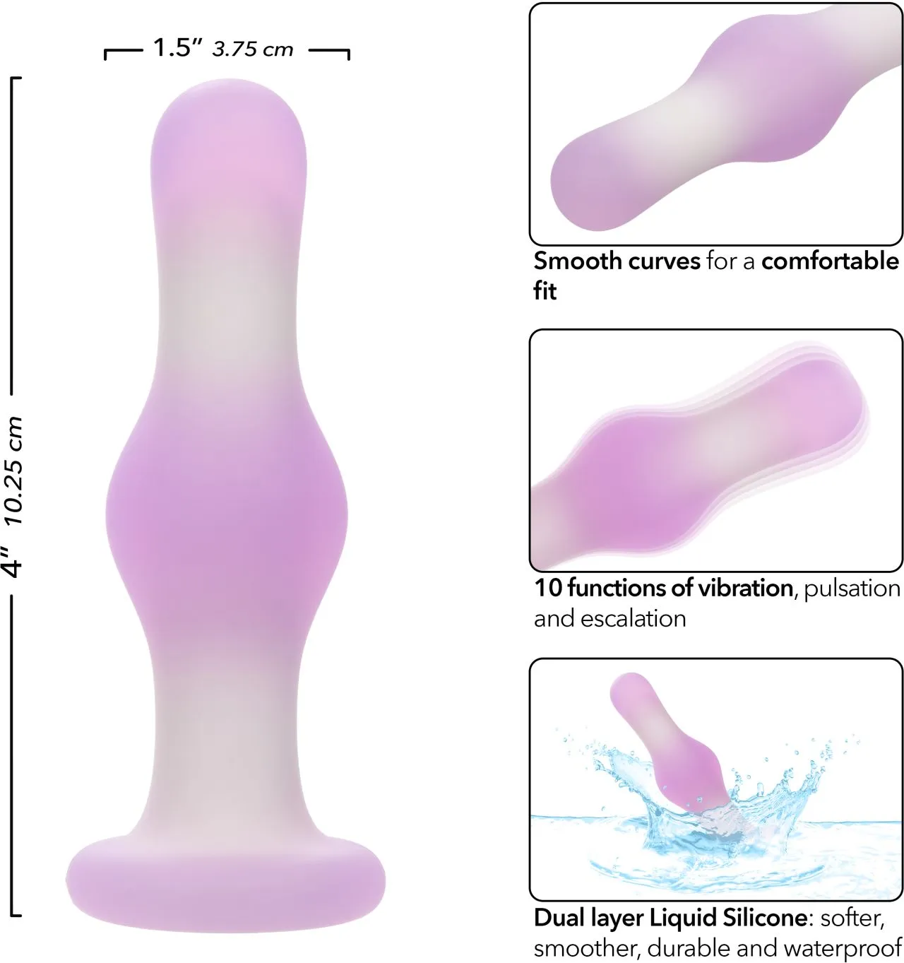 Изготовленный из двухслойного жидкого силикона, этот девайс не только ощущается более мягким и гладким на вашей коже, но также отличается высокой прочностью и полностью водонепроницаемостью.