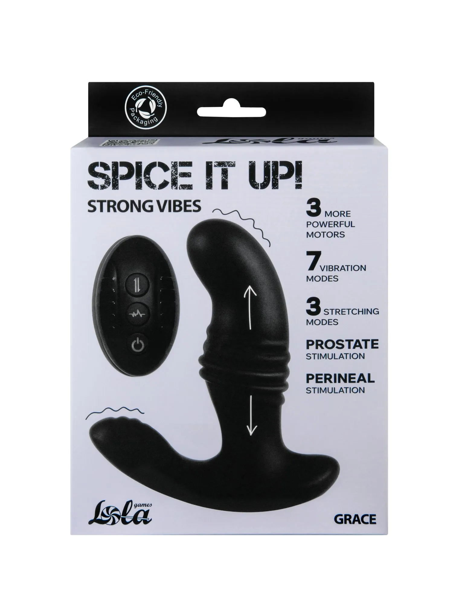 Spice it Up Grace - это водонепроницаемый силиконовый массажер простаты с удобным дистанционным пультом управления.  Игрушка имеет два вибромотора - в верхней части и в зоне для стимуляции промежности. Каждый мотор оснащен 7 режимами вибрации. Также массажер может пульсировать, растягиваясь и сжимаясь с разной частотой, воплощая 3 различных паттерна.  Анатомически выверенная проникающая часть с загнутым кончиком, вкупе с ее размерами, гарантированно достанет до простаты, усиливая потенцию и делая эякуляцию ярче. Массажер заряжается магнитным зарядным устройством, пульт ДУ работает от батарейки CR2032 (входит в комплект). Расстояние работы пульта до 15 метров.
