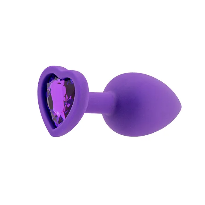 Шелковистая силиконовая анальная пробка от PinkRabbit в фиолетовом цвете с блистающим кристаллом в виде сердечка – прелестная игрушка для разнообразия любовных игр и ласк.