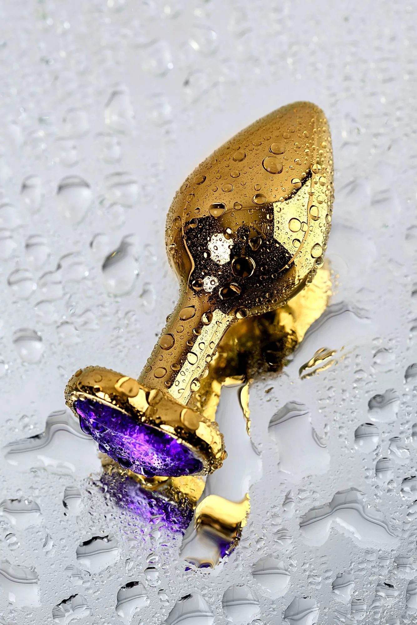 —Анальная втулка Metal by TOYFA, металл, золотая, с фиолетовым кристаллом, 8 см, Ø 3 см, 165 г