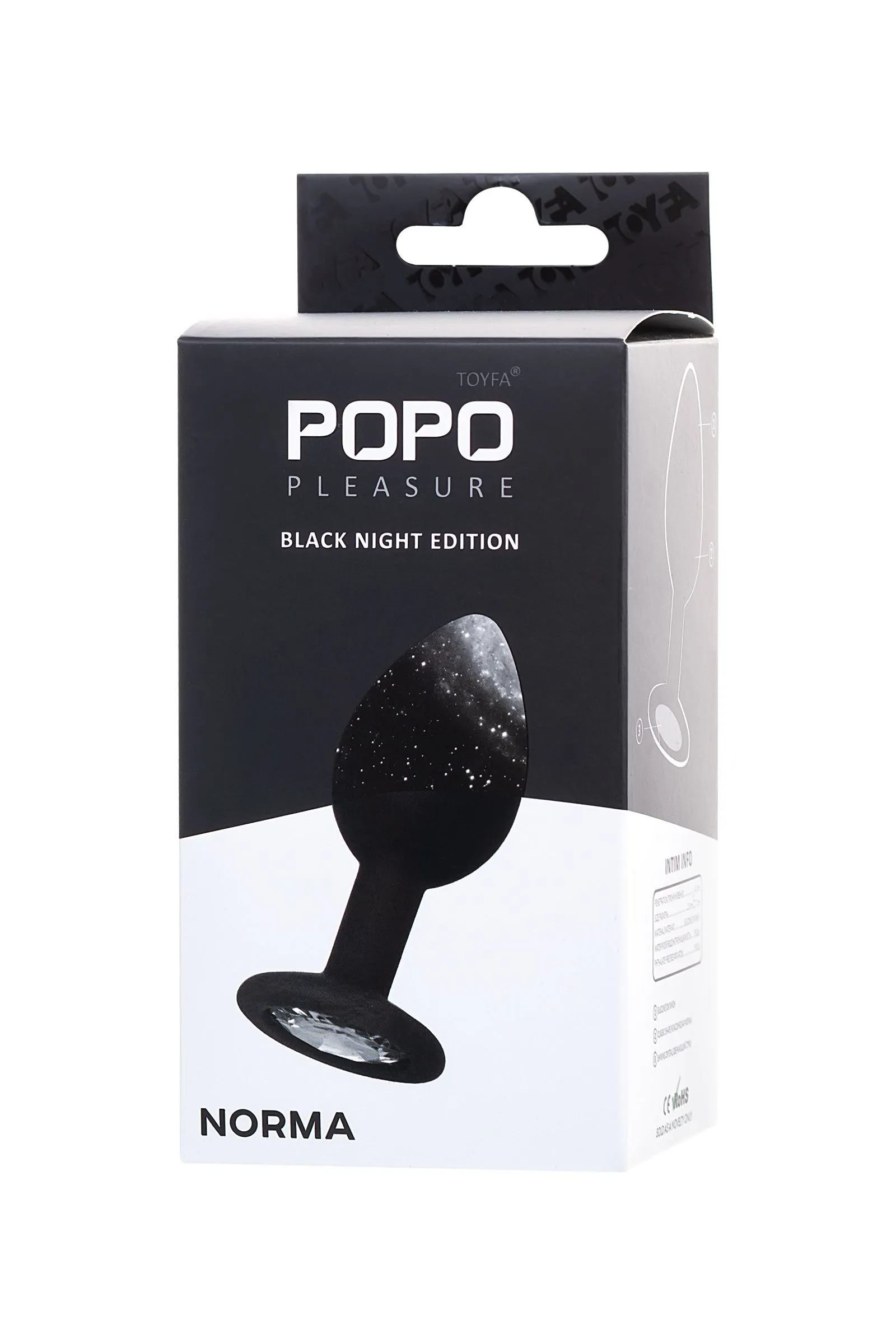 —Анальная втулка POPO Pleasure by TOYFA со стразом S, силикон, черная, 7,2 см, Ø 2,8 см, 25 г