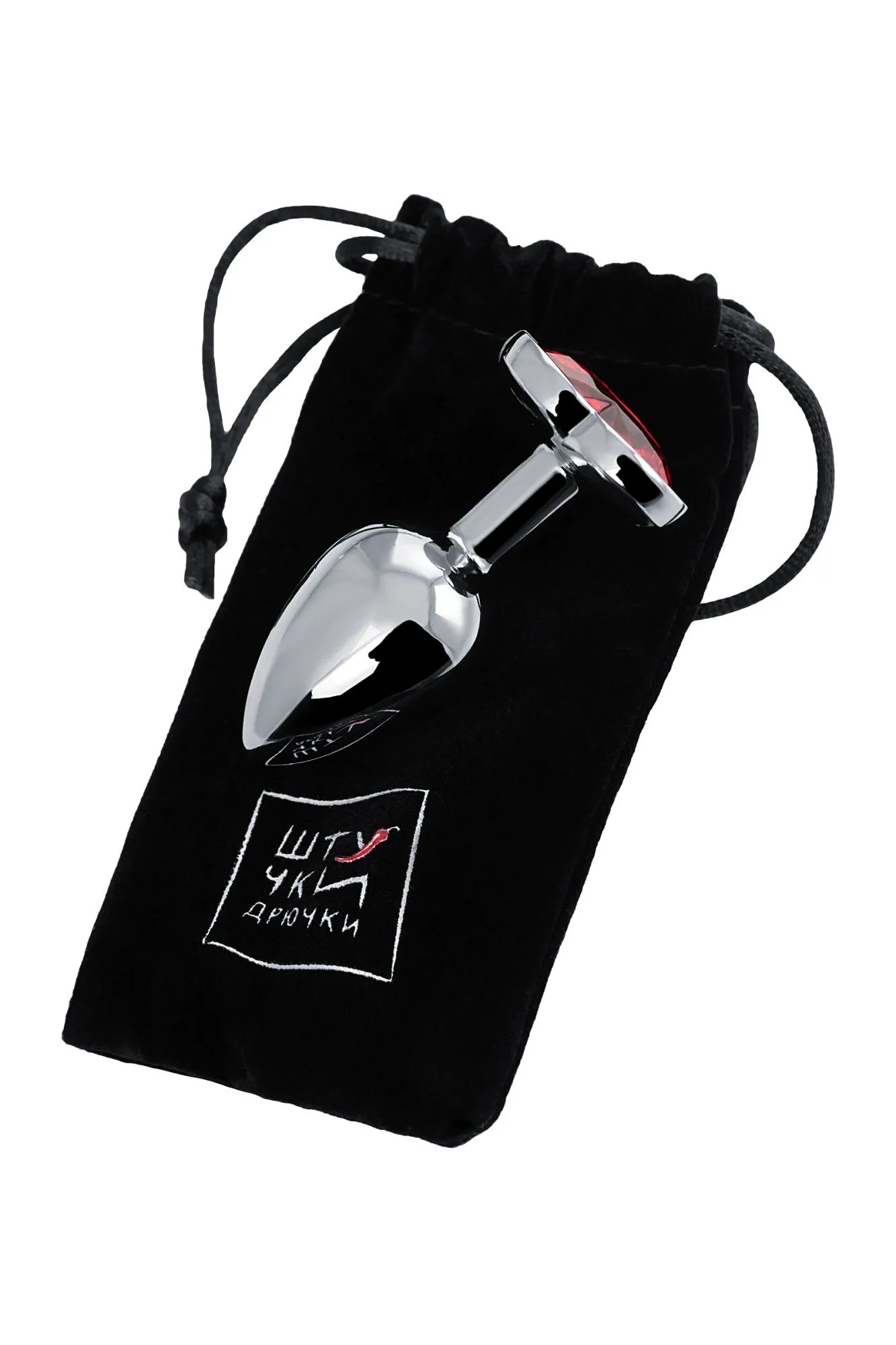 —Анальная втулка Штучки-Дрючки, металл, серебряная, с красным кристаллом, 7 см, Ø 2,7 см, 50 г
