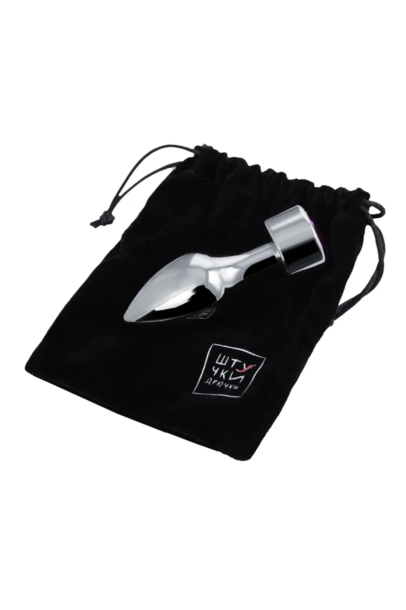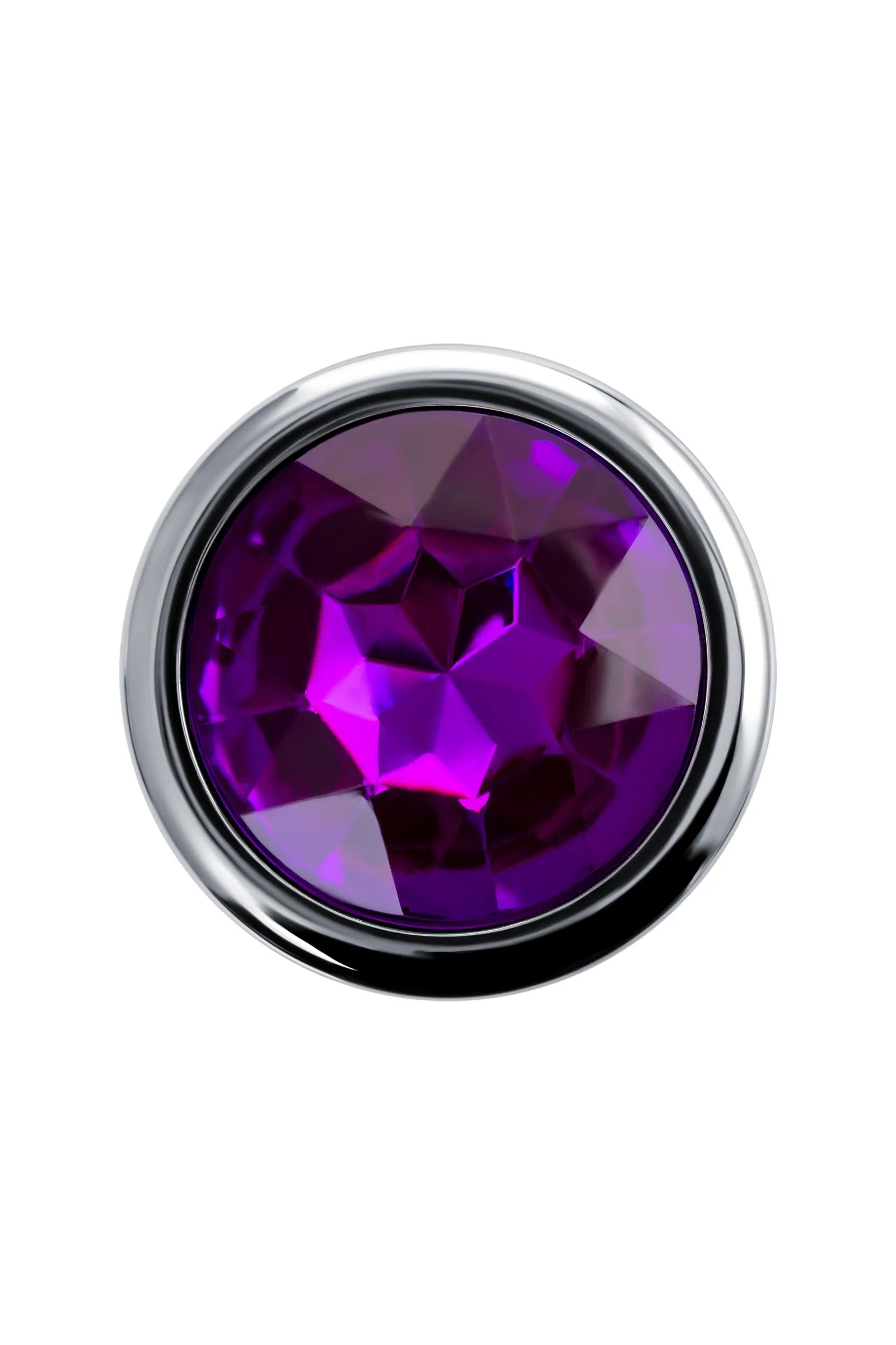 —Анальная втулка Штучки-дрючки, металл, серебряная, с кристаллом фиолетовым, 9,5 см, Ø 3,5 см, 130