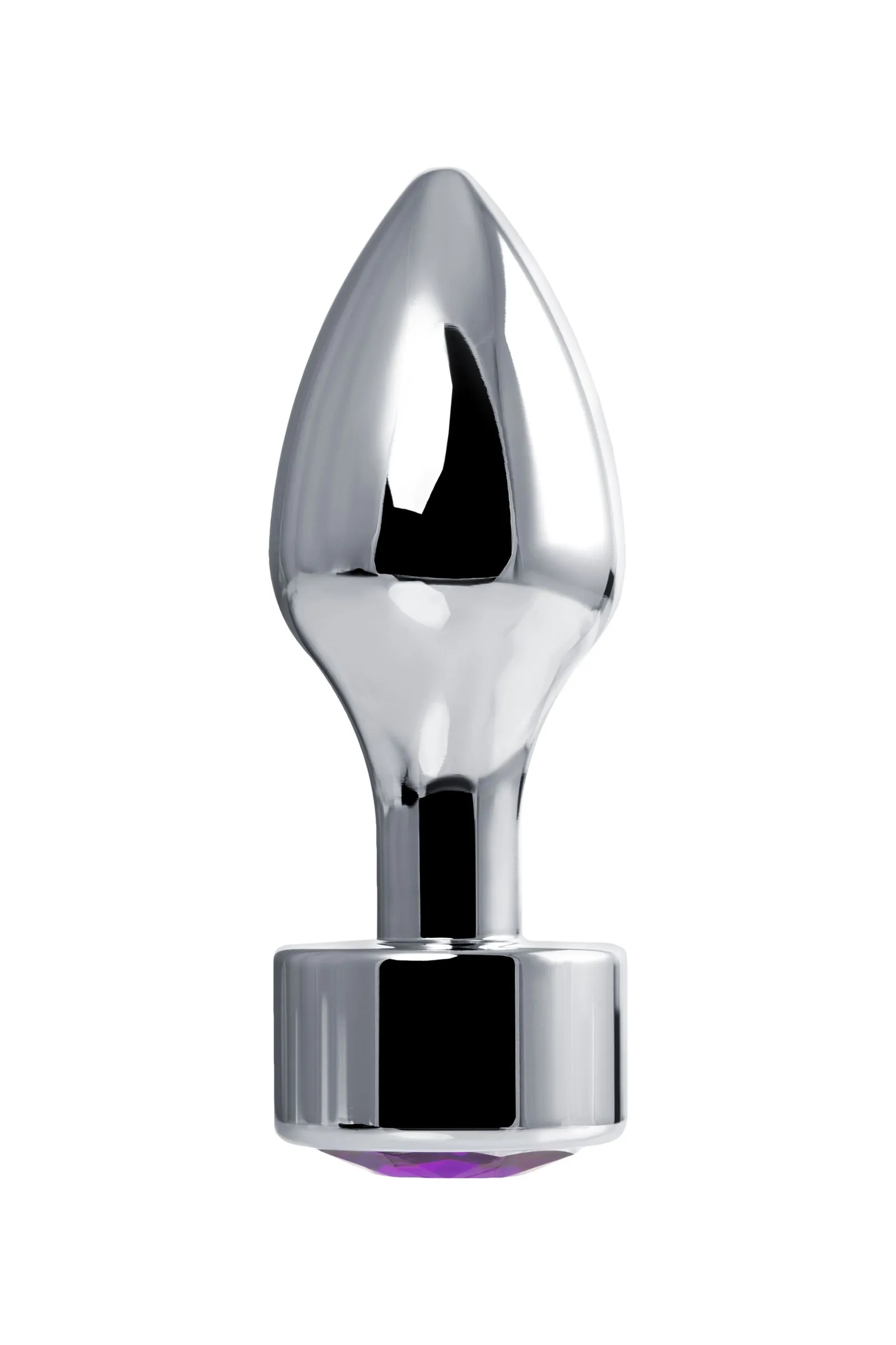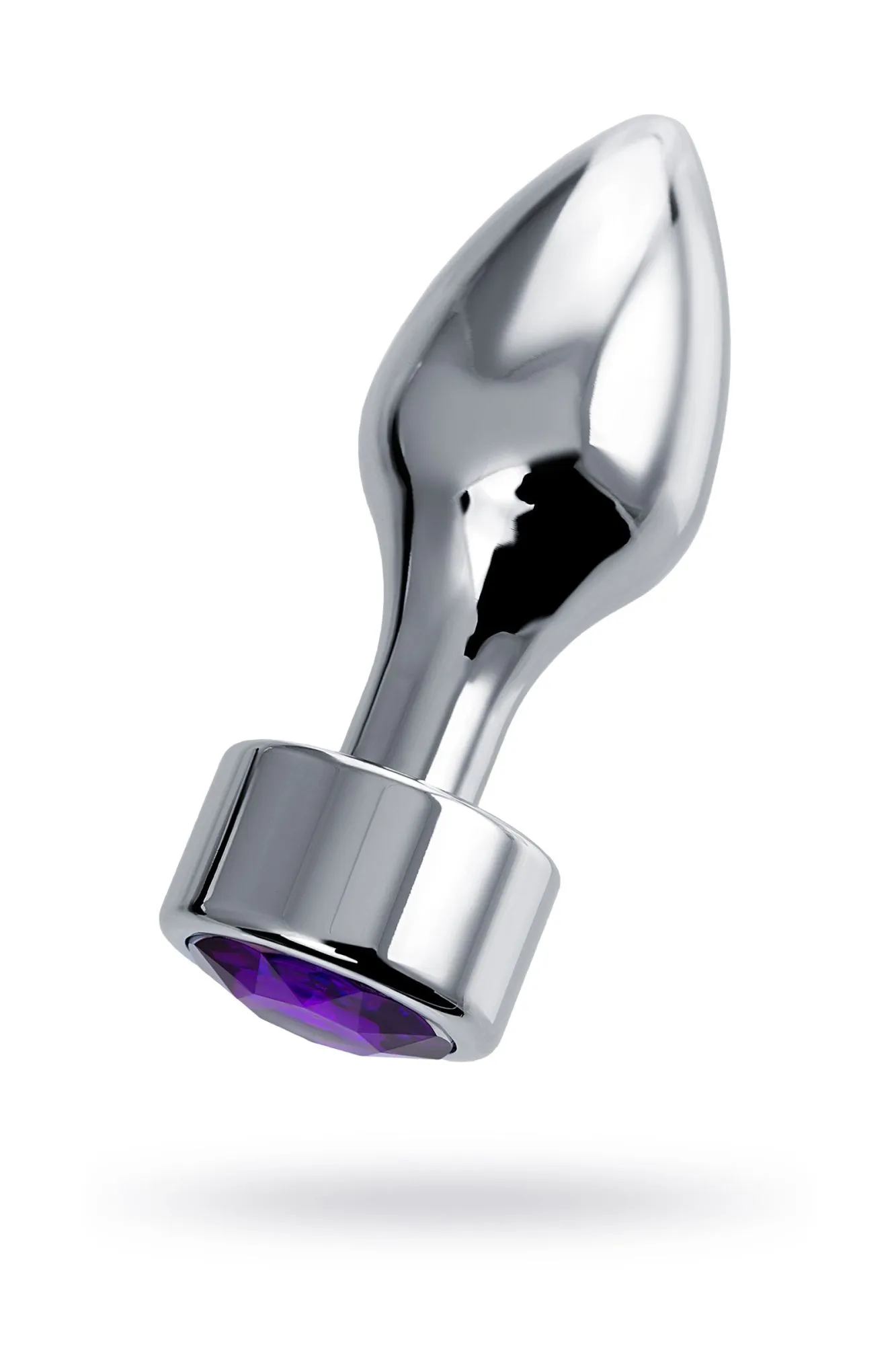 Анальная втулка Штучки-дрючки, металл, серебряная, с кристаллом фиолетовым, 9,5 см, Ø 3,5 см, 130