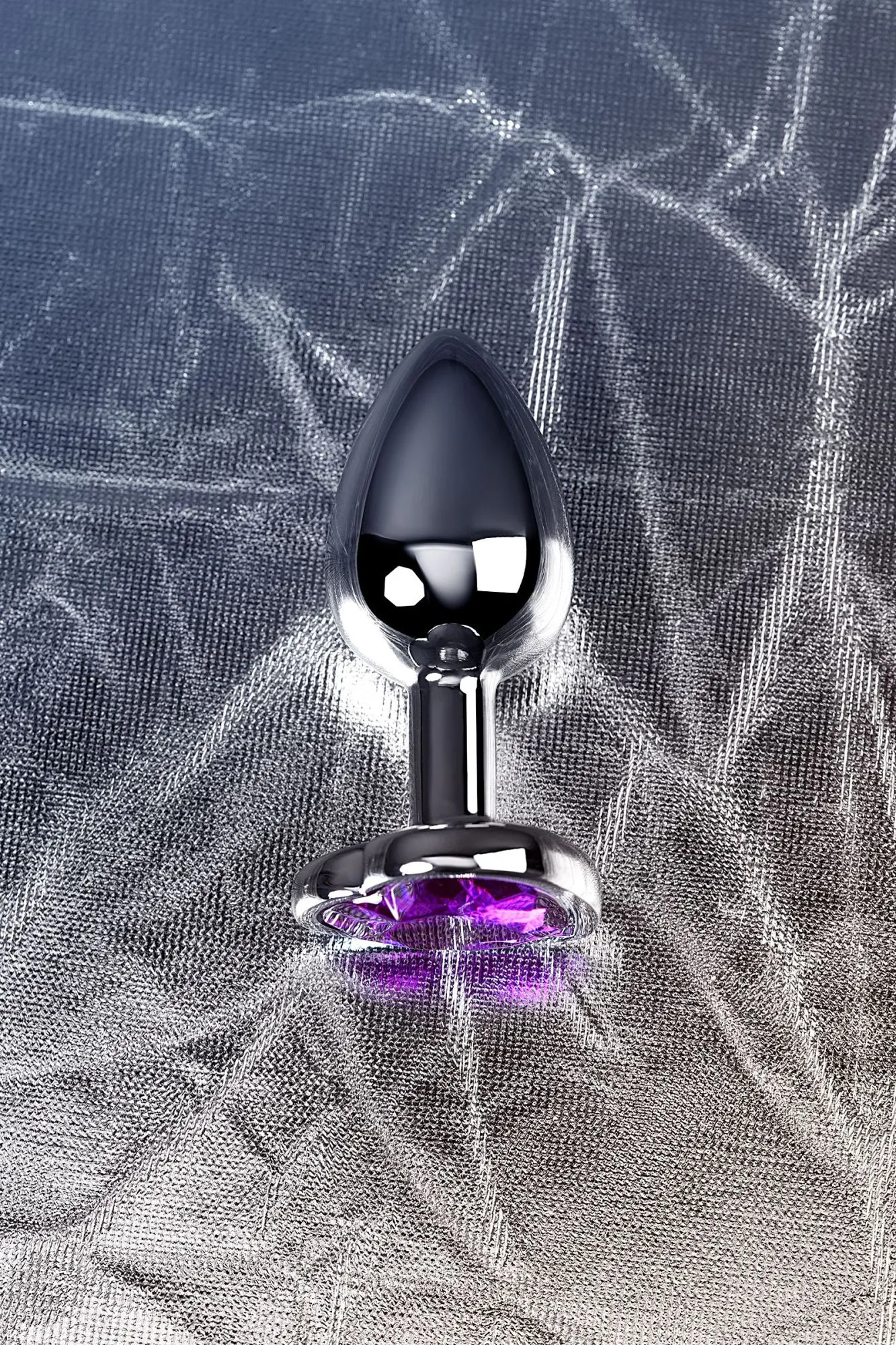 —Анальная втулка Metal by TOYFA, металл, серебряная, с фиолетовым кристаллом, 7 см, Ø 2,7 см, 50 г