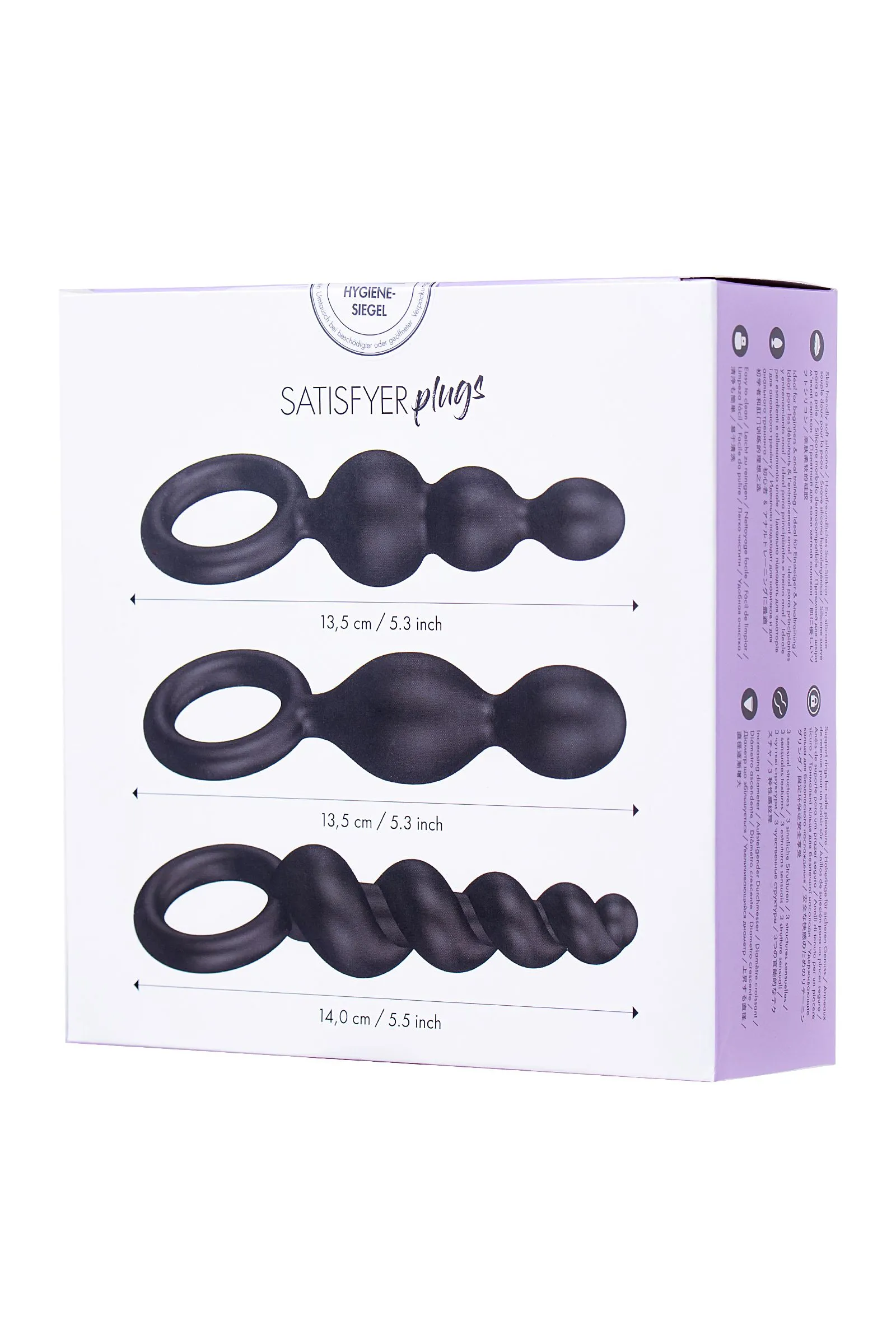 Если вы хотите расширить границы чувственности и сексуальности или же постичь удовольствие от анальных ласк – этот набор для Вас! Satisfyer Plugs созданы для воплощения в реальность возбуждающих анальных фантазий. Гибкие, нежные на ощупь, гипоаллергенные и водонепроницаемые стимуляторы подарят вам незабываемые эмоции! Игрушки выполнены в 3-х видах рельефах для совершенно разных ощущений. Длина: 13,5см мин. Ø 1,9см;макс.Ø 2,7см Длина: 13 см мин. Ø 1,4см;макс.Ø 2,8см Длина: 14см мин. Ø 0,9см;макс.Ø 2,4см