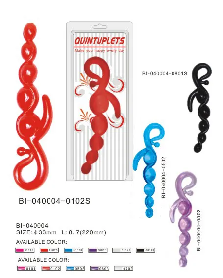 Анальный стимулятор розового цвета оригинальной формы в красивой упаковке. Имеет пять звеньев разных по диаметру. Изгиб в основании изделия, позволяет удобно удерживать игрушку во время стимуляции. Материал изготовления ПВХ. Общая длина 21 см, рабочая длина 13,5 см, максимальный диаметр 3 см, минимальный 1,5 см. Упаковка - блистер.
