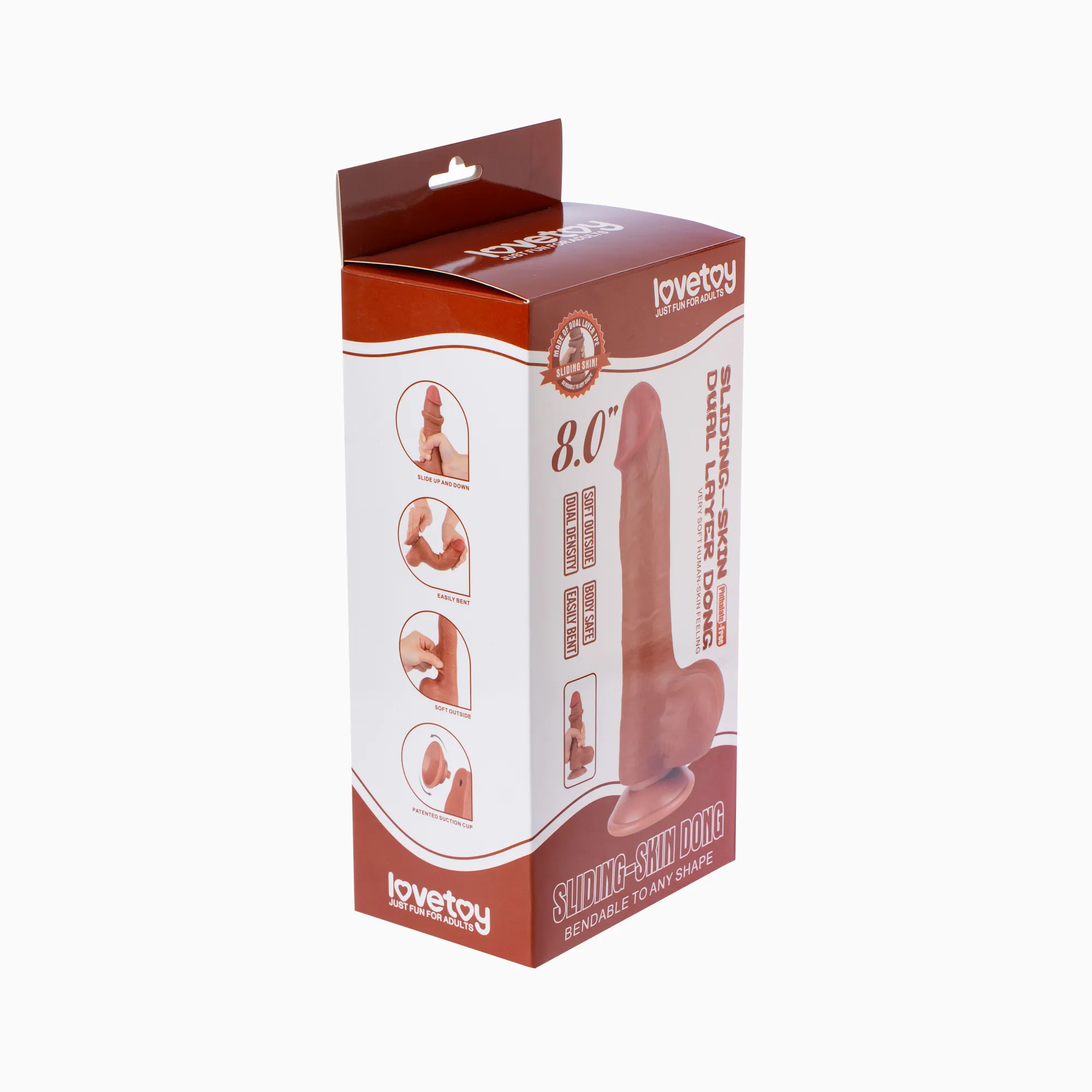 Фаллоимитатор реалистичный Lovetoy двухслойный на присоске 20 см, загорелый